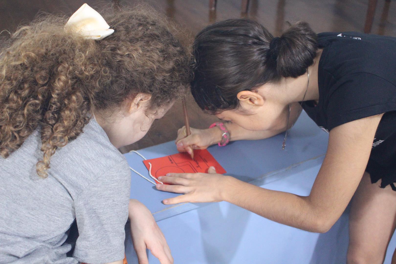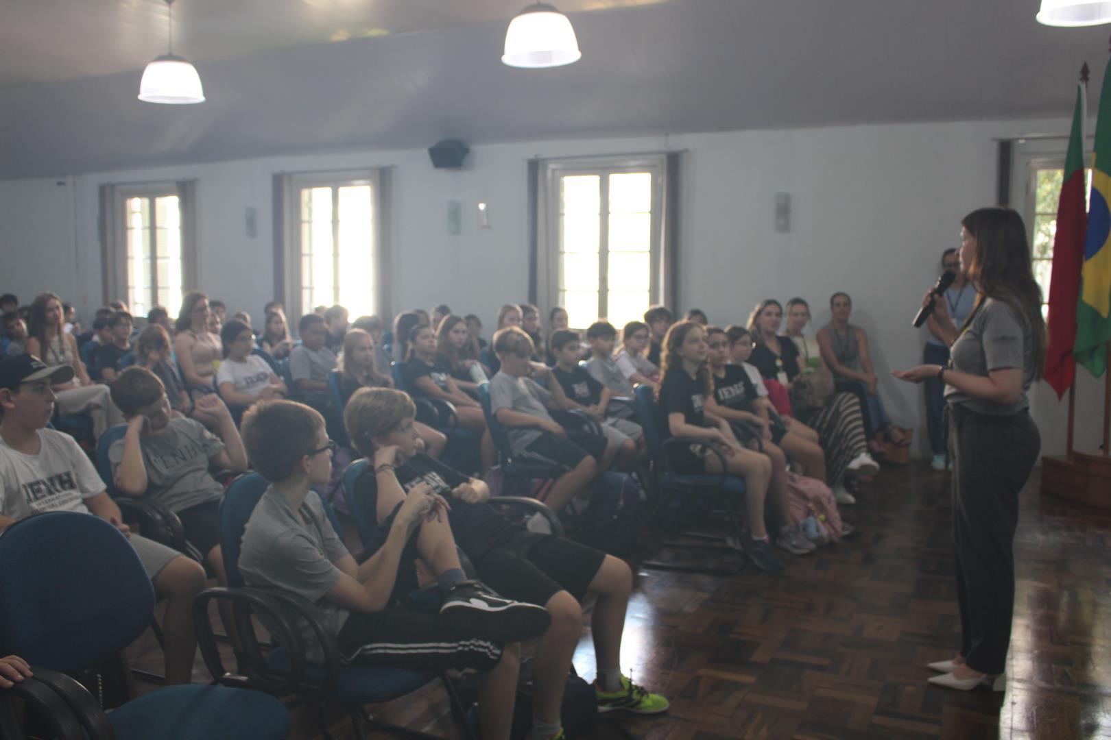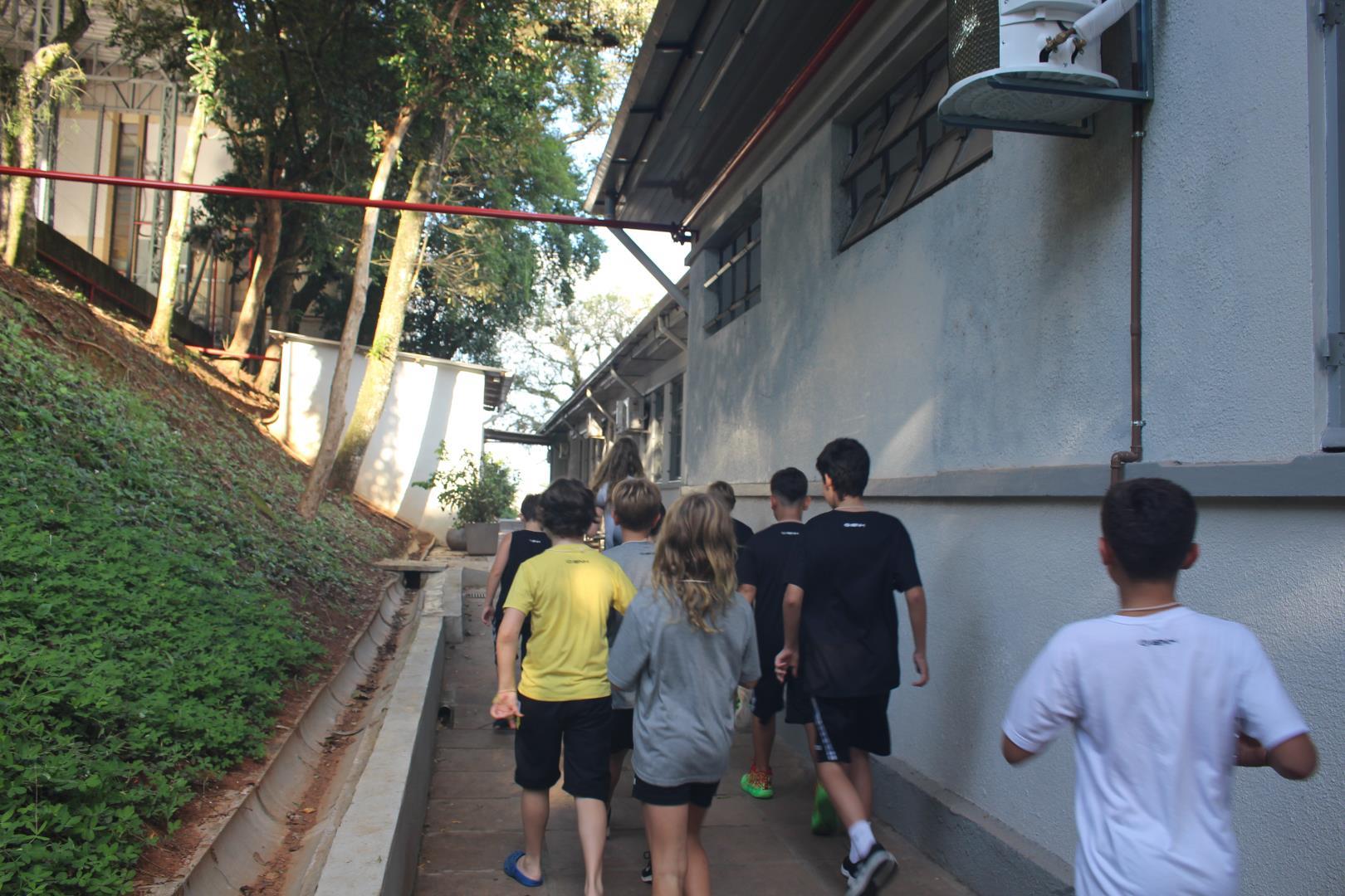 Os estudantes tiveram um momento de intervalo e, em seguida, participaram de uma caça ao tesouro, com o objetivo de conhecer melhor os ambientes da escola. Eles foram separados em grupos, e cada um foi guiado por um aluno do Ensino Médio e por uma professora ou auxiliar.