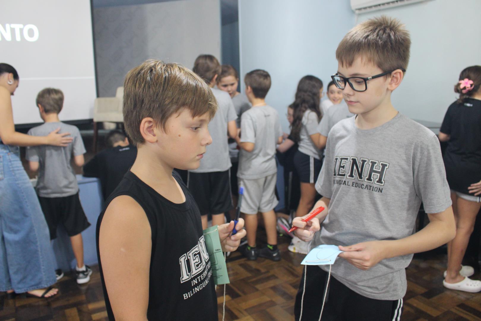 As turmas do Year 5 do Ensino Fundamental do Currículo Internacional Bilíngue da IENH – Unidades Pindorama e Oswaldo Cruz participaram do primeiro Pinwaldo, na Unidade Fundação Evangélica. A atividade tem como objetivo familiarizar os estudantes com os ambientes e o dia a dia da escola na qual, no próximo ano, irão estudar, no Year 6.
