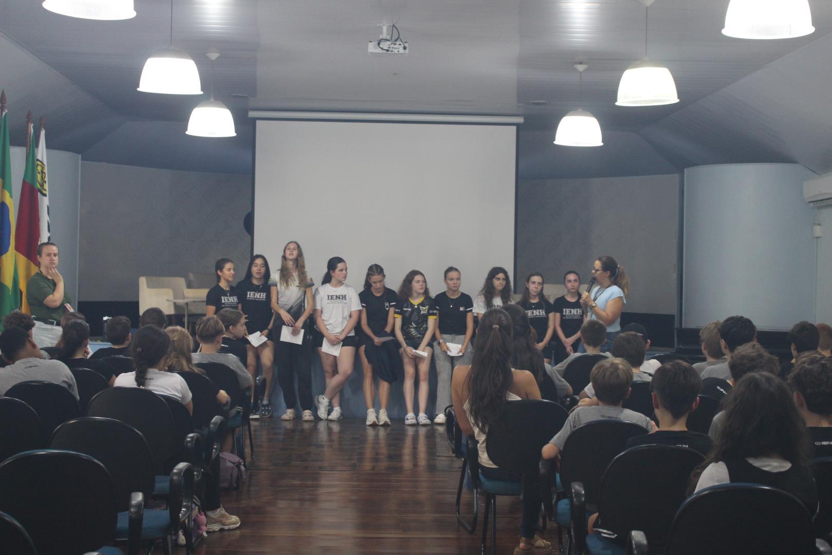 A programação começou às 13h30, com uma acolhida na sala de conferências e a apresentação da Equipe Pedagógica, seguida de uma meditação organizada pela Pastoral Escolar e uma fala do Núcleo Pedagógico. Os estudantes também participaram de dinâmicas que incentivaram conhecer uma pessoa nova, integrando as Unidades.