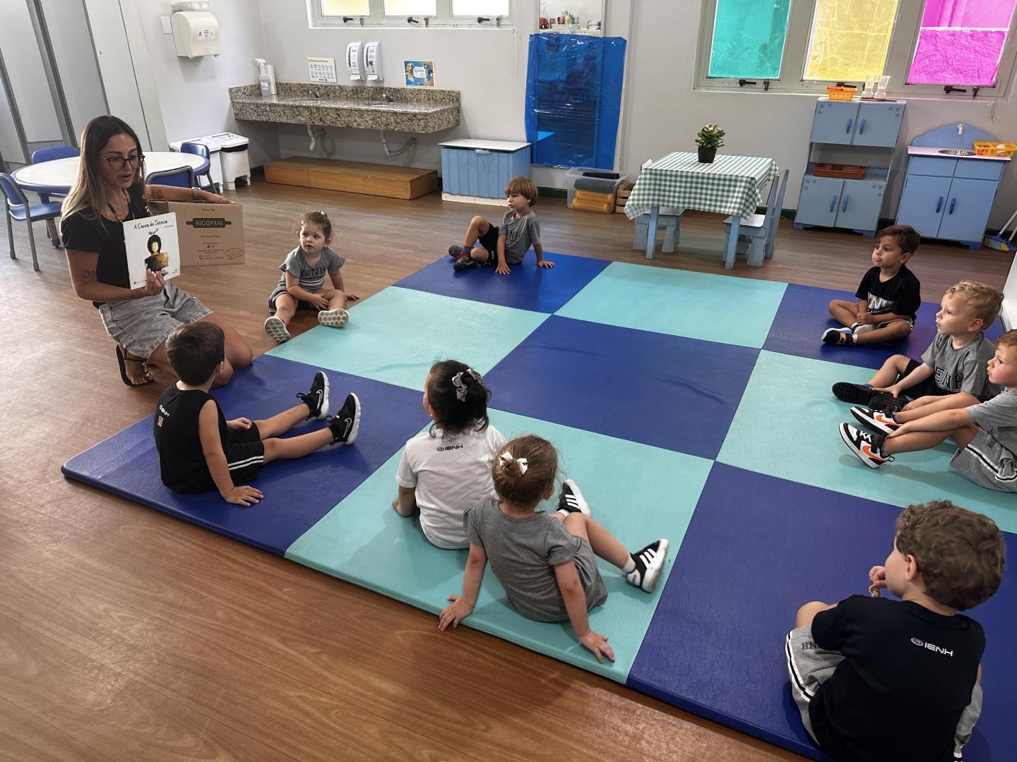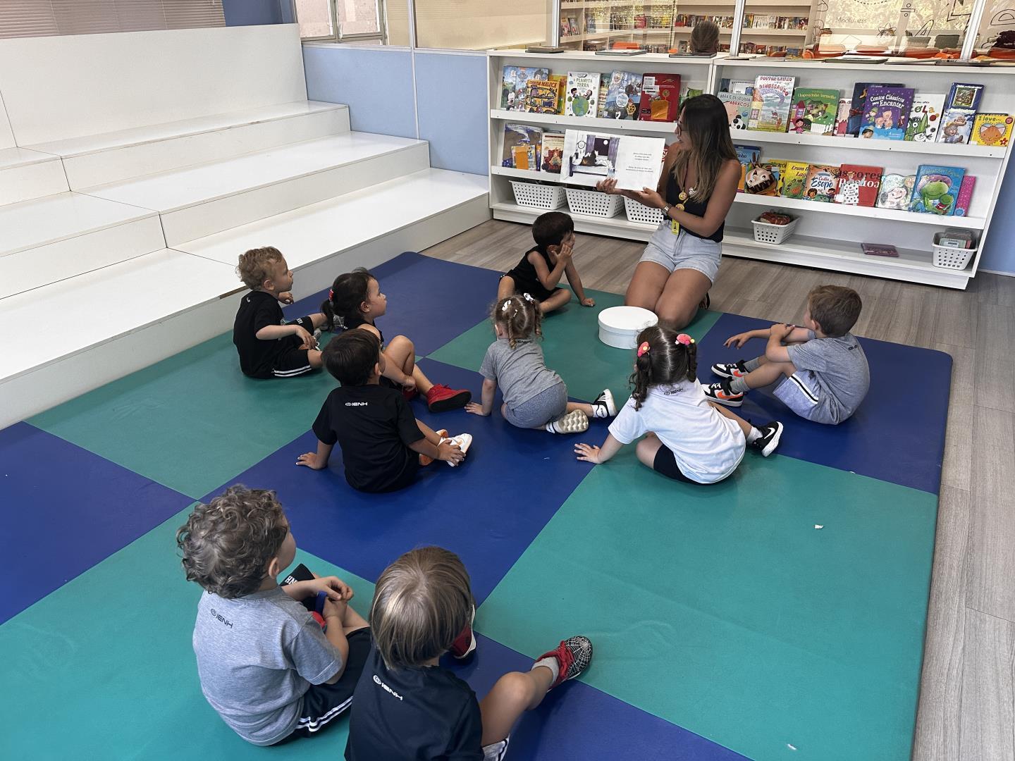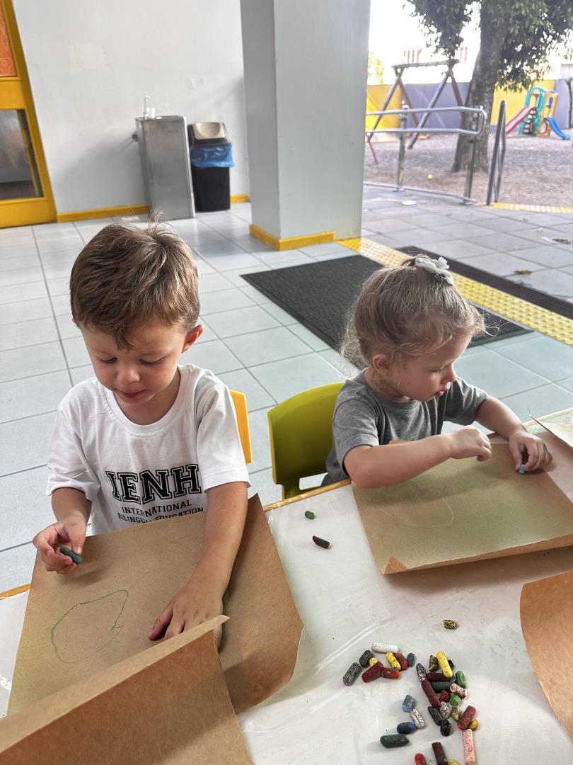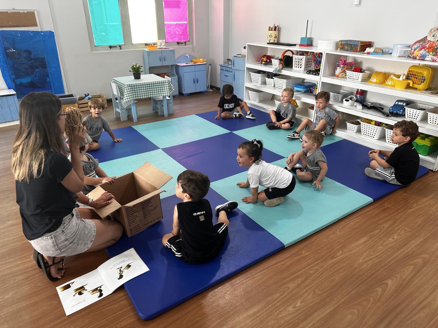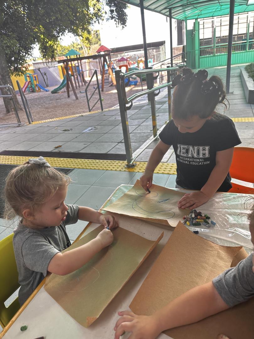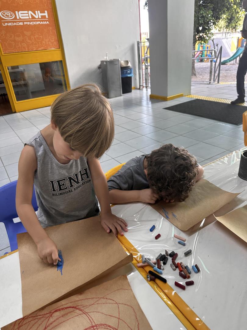 Os alunos do Kindergarten 3B da Educação Infantil do Currículo Internacional Bilíngue da IENH – Unidade Pindorama participaram de uma atividade especial na biblioteca, inspirada no livro A Caixa de Jéssica, de Peter Carnavas. A proposta, conduzida pela professora Joana Schneider Machado, buscou conectar a história às experiências vividas pelas crianças nos primeiros dias de aula.