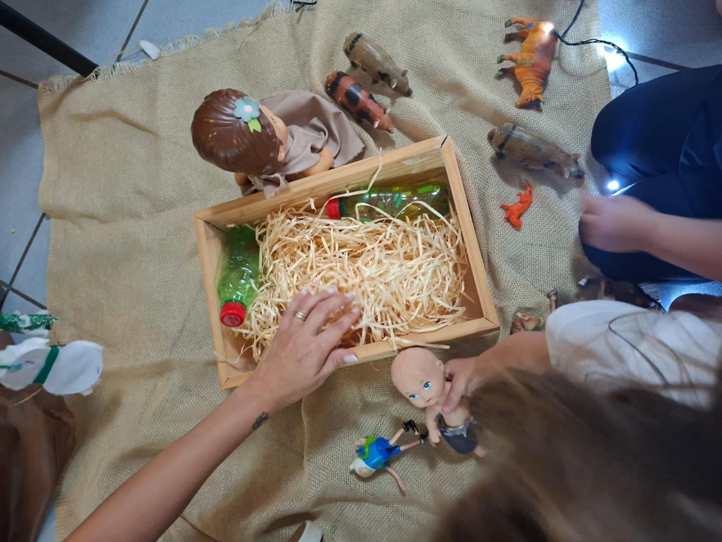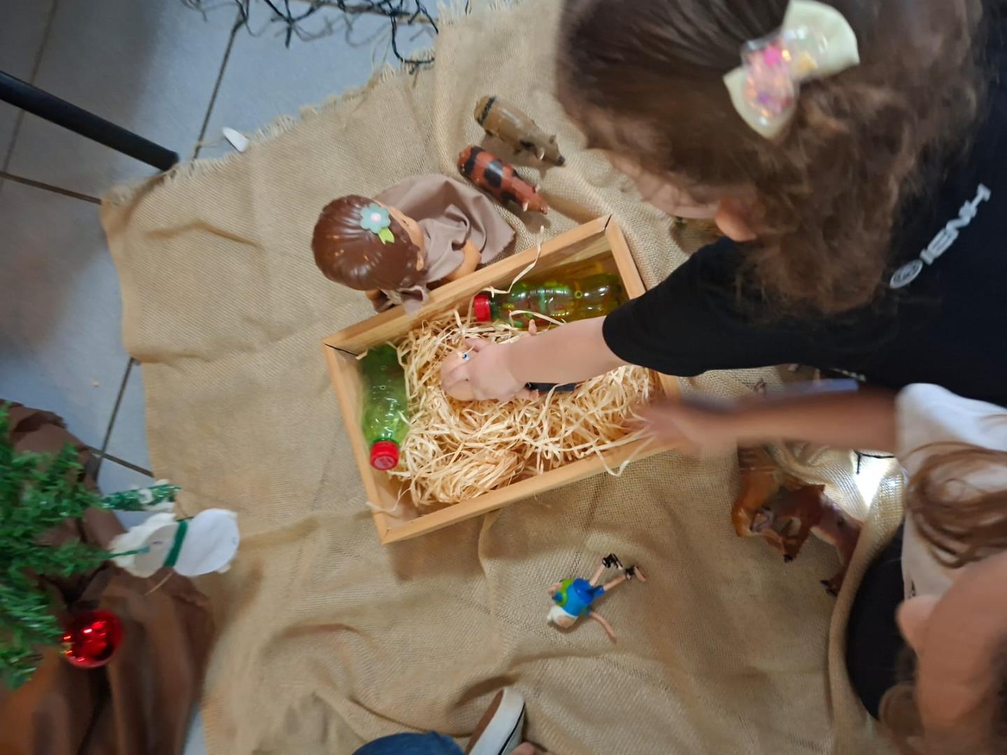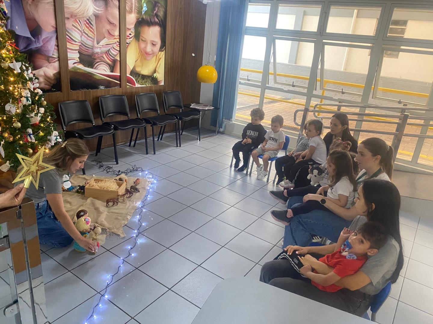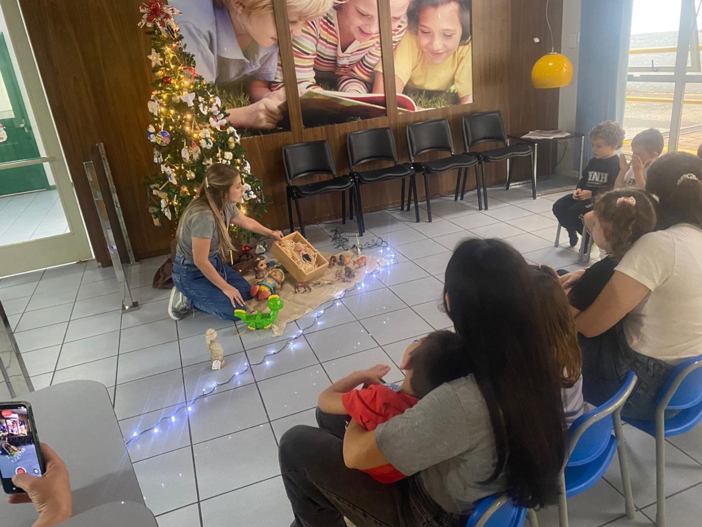 Organizada pelas professoras Amanda Siebel e Caroline Bender e pela teacher Amanda Escobar a proposta integrou a programação especial de final de ano. Reunidas em frente ao pinheiro de Natal da escola, as crianças acompanharam a narrativa enquanto diferentes objetos concretos eram utilizados para representar os personagens e elementos da história bíblica, favorecendo a compreensão e tornando o momento ainda mais significativo.