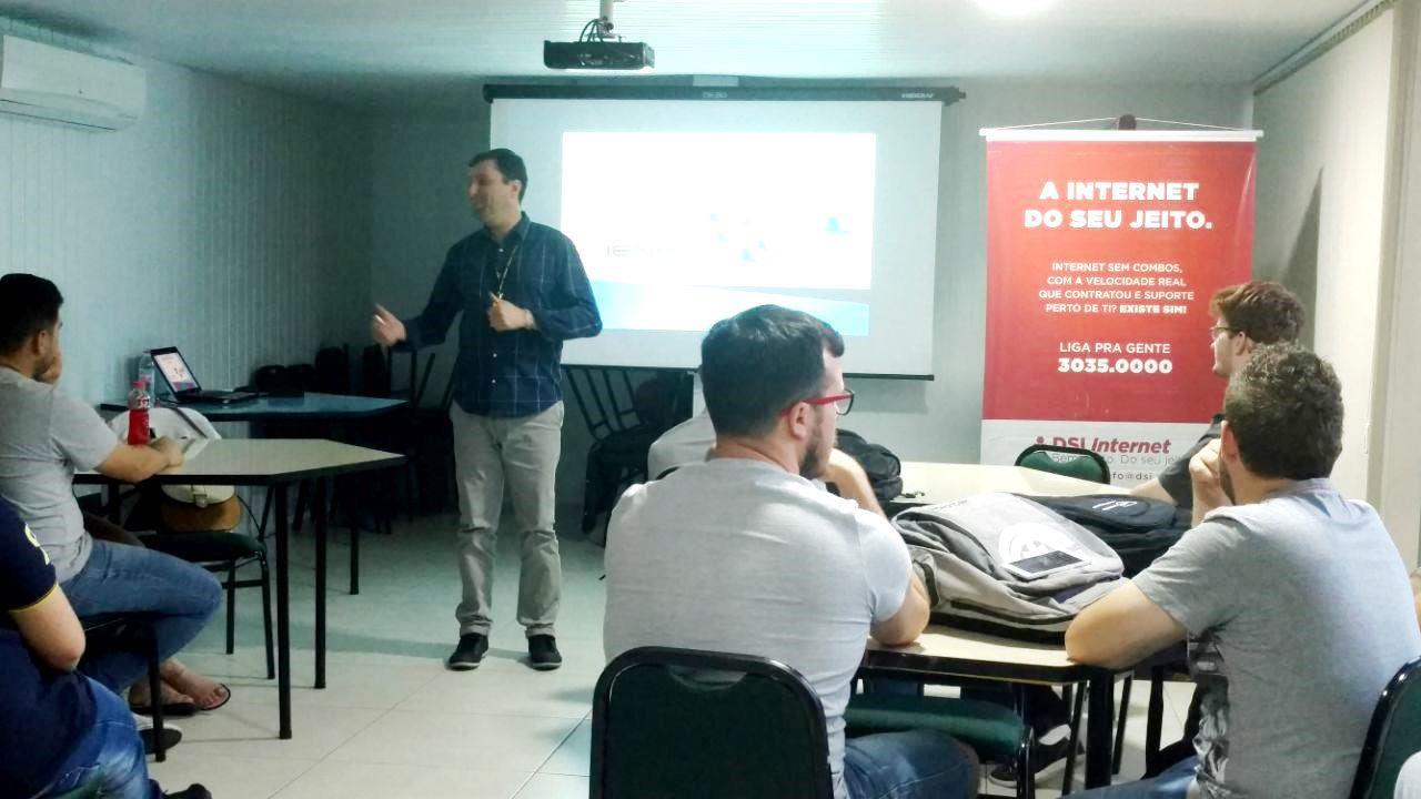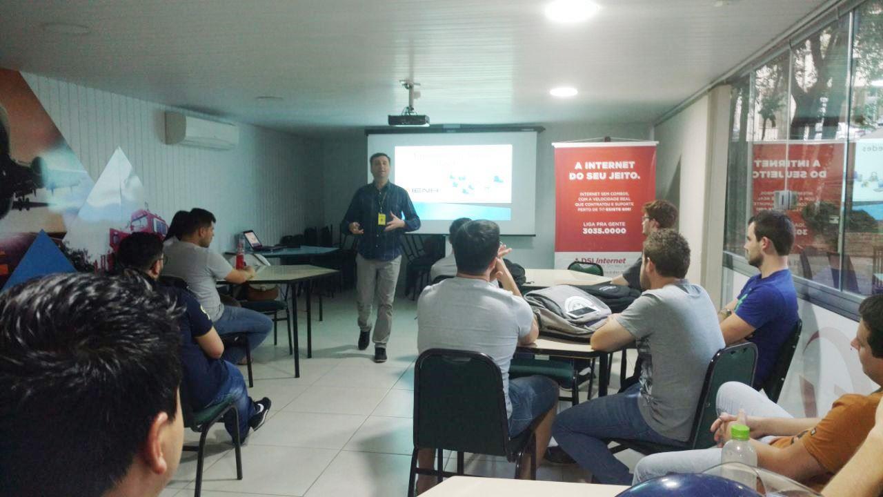 Acompanhados pelo Coordenador dos Cursos de Tecnologia e Professor – Eduardo Back, na disciplina de Introdução a Redes de Computadores, os alunos participaram de um bate-papo com o Coordenador do Curso Técnico em Informática e Analista de Redes e Sistemas da IENH – Cristiano Schneider, egresso do Curso de Redes de Computadores. No encontro, Cristiano falou sobre o funcionamento da TI da IENH, aliando a teoria à prática.