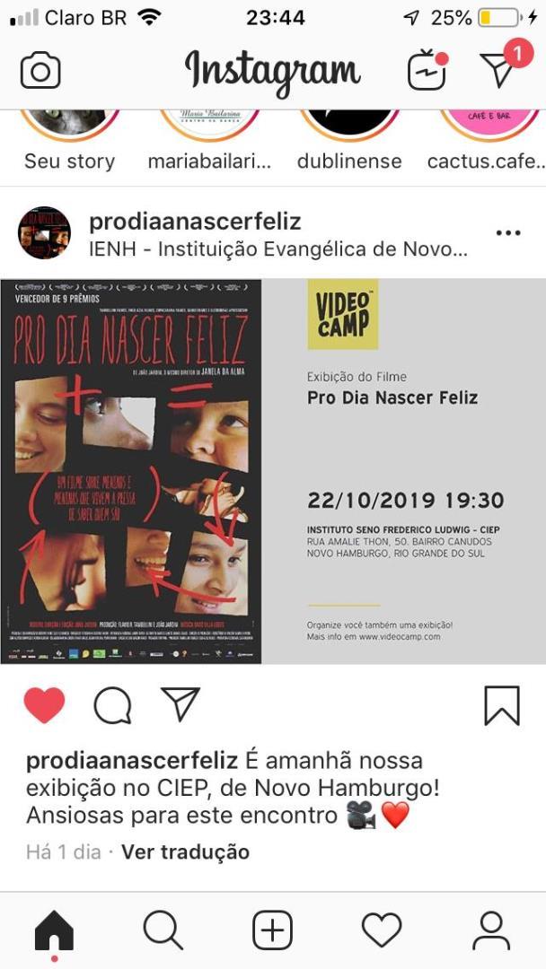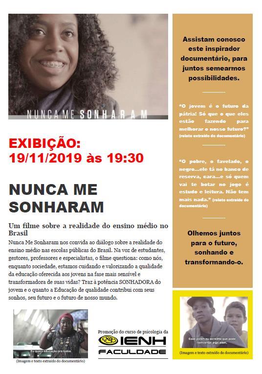 Em um projeto de extensão da disciplina de Psicologia Social do Curso de Psicologia da Faculdade IENH, foi proposta a exibição de documentários abordando diferentes temáticas sociais para alunos do Instituto Estadual Seno Frederico Ludwig, de Novo Hamburgo.