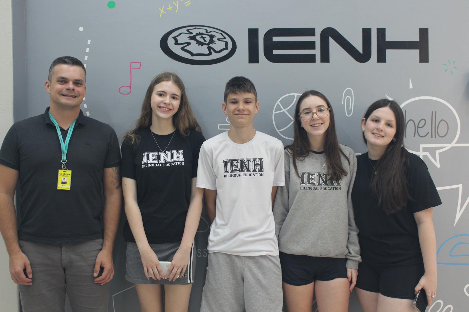 Representando o grupo FEMUN (simulações da ONU) da IENH, quatro estudantes estão participando do WorldEd Future Thinking Debate 2025, uma competição internacional on-line que reúne jovens de todo o mundo para discutir temas globais em inglês. A equipe é coordenada pelo professor Michel Banderó da Rosa, responsável pelo Centro de Interesse do grupo.