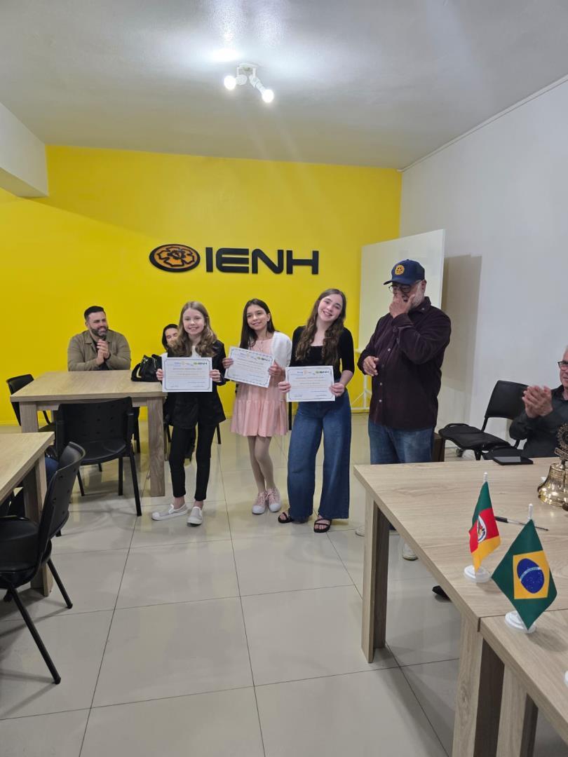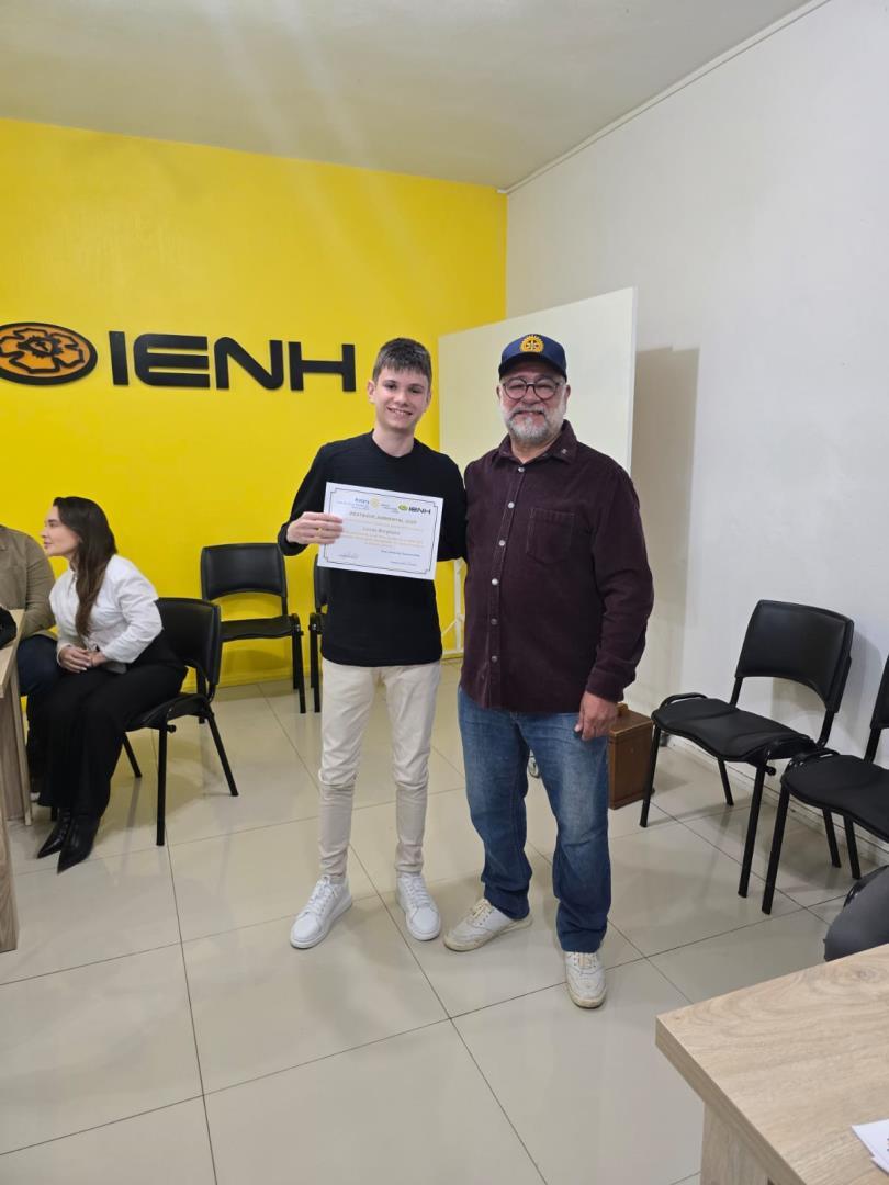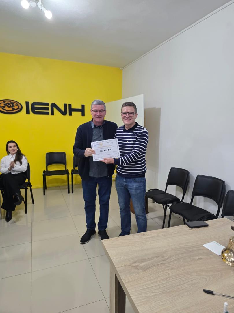 Além da premiação dos estudantes, a reunião também contou com a homenagem a patrocinadores que apoiam as atividades do Rotary, onde o coordenador de Gestão da IENH, Antônio Guimarães representou a Instituição.