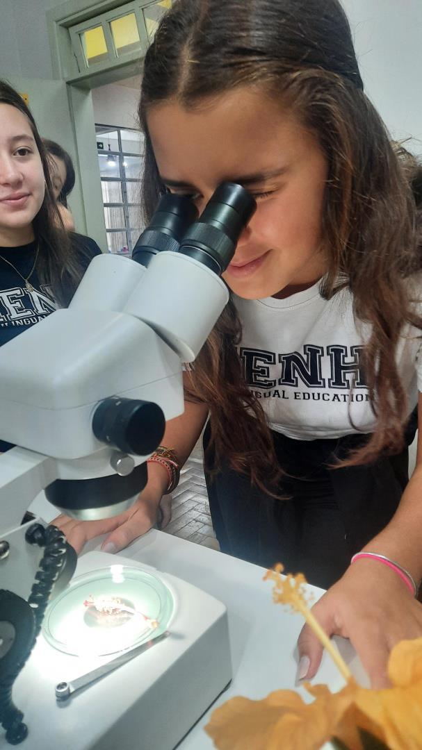 Os alunos das turmas Year 8 do Ensino Fundamental do Currículo Internacional Bilíngue da IENH – Unidade Fundação Evangélica participaram de uma aula especial no laboratório de microscopia, tornando o aprendizado sobre a reprodução das angiospermas ainda mais envolvente e significativo.