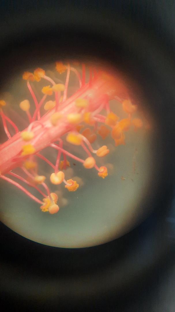 Utilizando lupas eletrônicas, os estudantes puderam observar com riqueza de detalhes componentes essenciais do processo reprodutivo, como estames, pistilos, grãos de pólen e ovários. A manipulação dos instrumentos e a visualização direta dos elementos estudados em sala proporcionaram uma experiência concreta de aprendizagem, reforçando os conteúdos de forma duradoura.