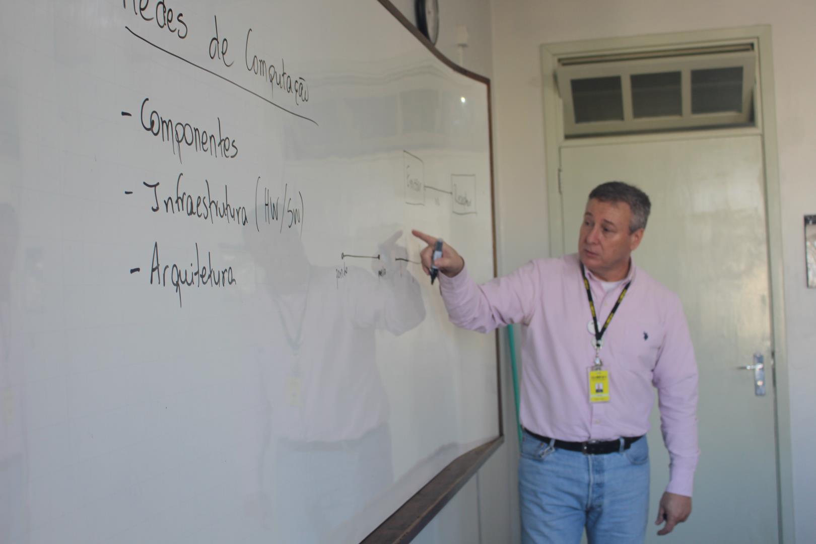 No primeiro momento, o professor apresentou os principais elementos que compõem uma rede, explicando sua arquitetura e os diferentes tipos de vias de comunicação.