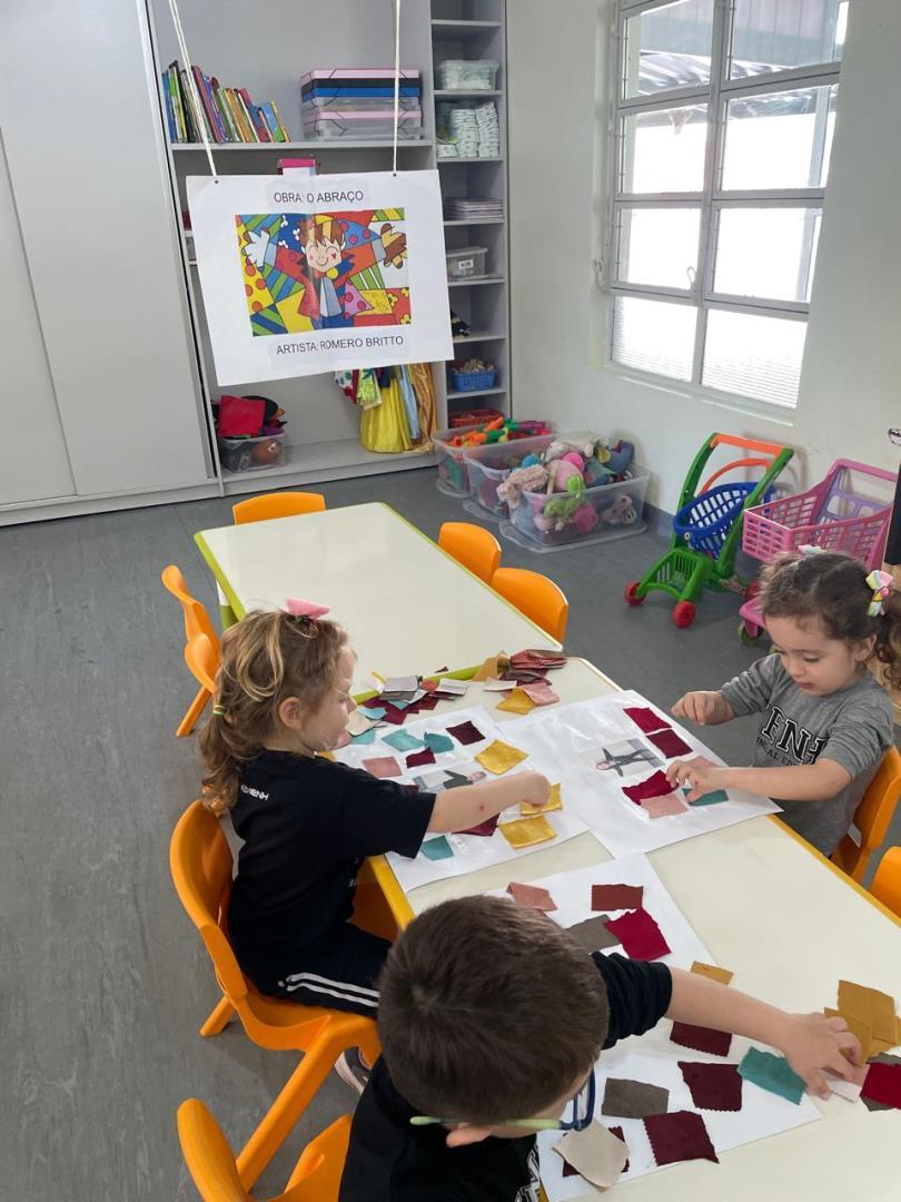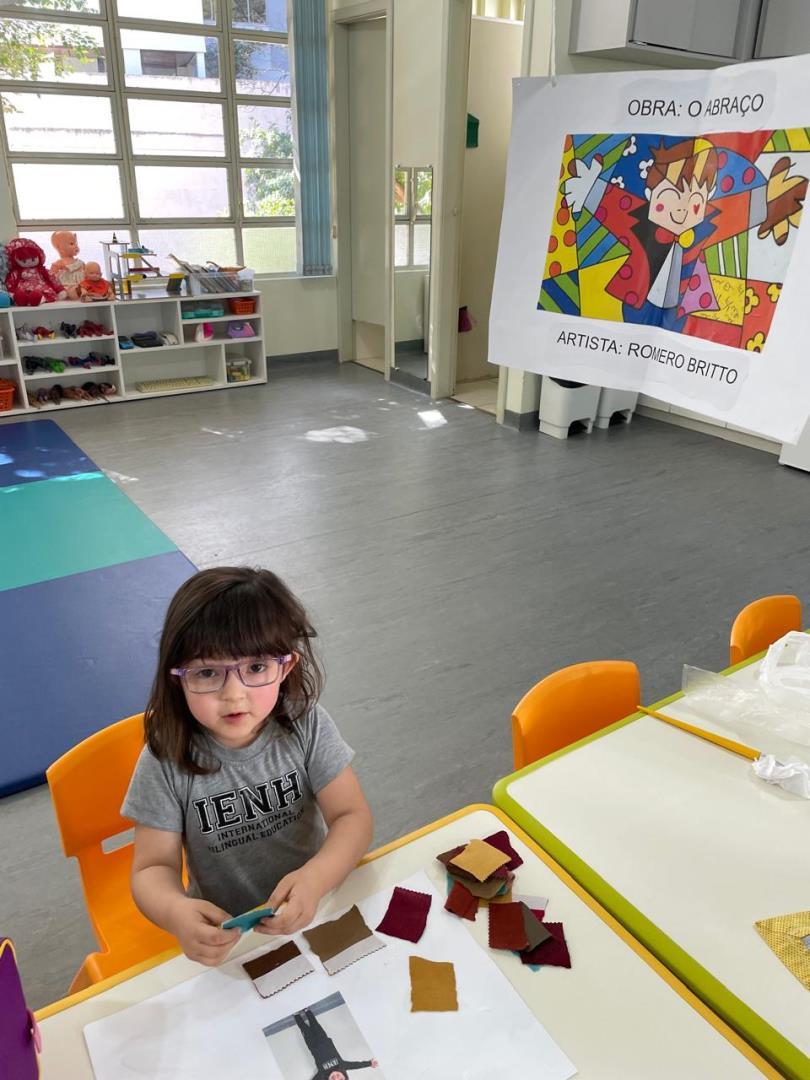 No dia 20 de agosto, as crianças do Kindergarten 3B da Educação Infantil do Currículo Internacional Bilíngue da IENH - Unidade Oswaldo Cruz vivenciaram uma experiência especial de apreciação artística. Em sala de aula, as crianças conheceram a obra “O Abraço”, do artista Romero Britto, refletindo sobre os sentimentos de carinho, afeto e acolhimento presentes em suas cores e formas.