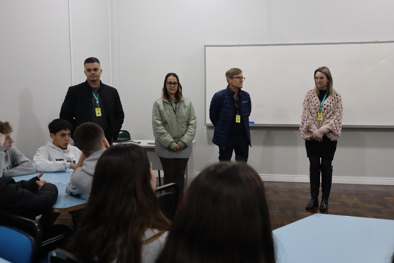 O encontro contou com a presença do diretor geral da IENH, Seno Leonhardt, da coordenadora da Unidade, Daniele Blos, do professor Michel Banderó e da psicóloga escolar Patrícia Neumann. Michel e Patrícia serão os responsáveis por acompanhar os alunos durante toda a experiência internacional.