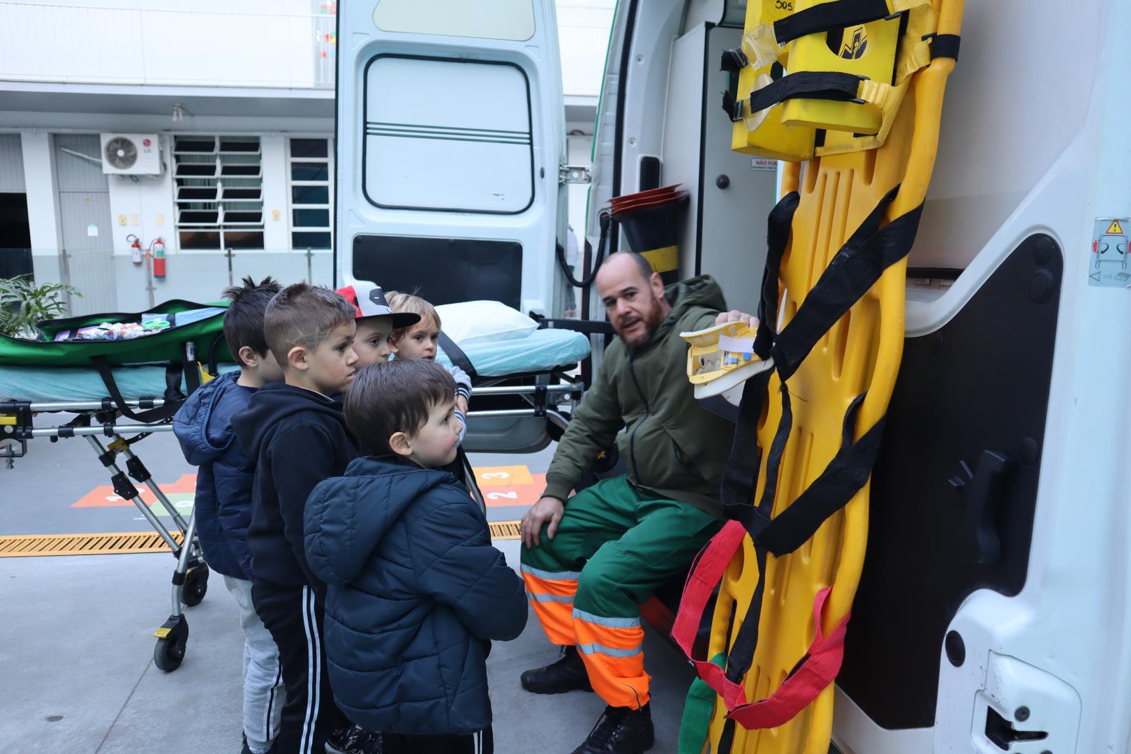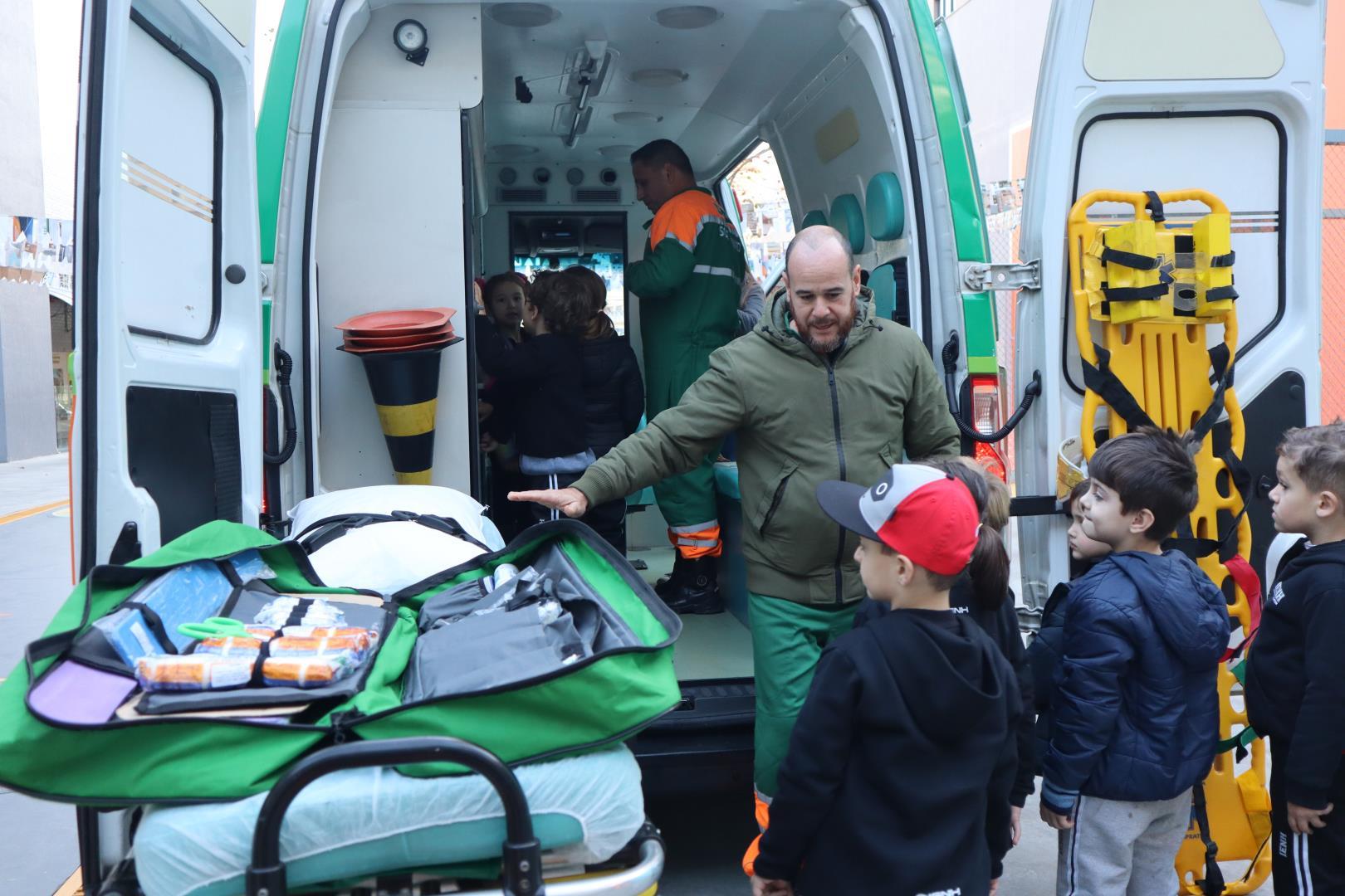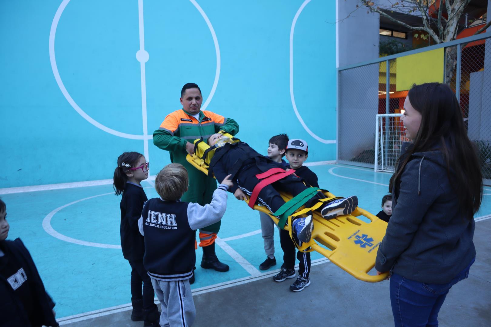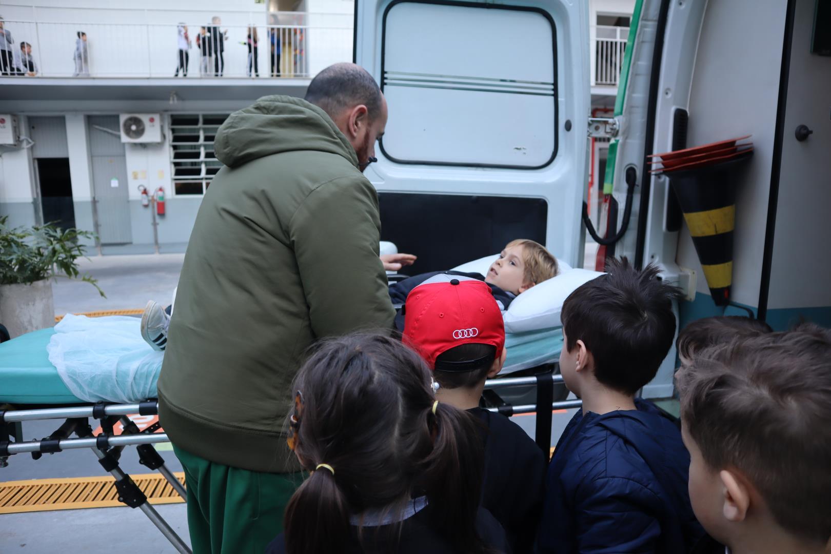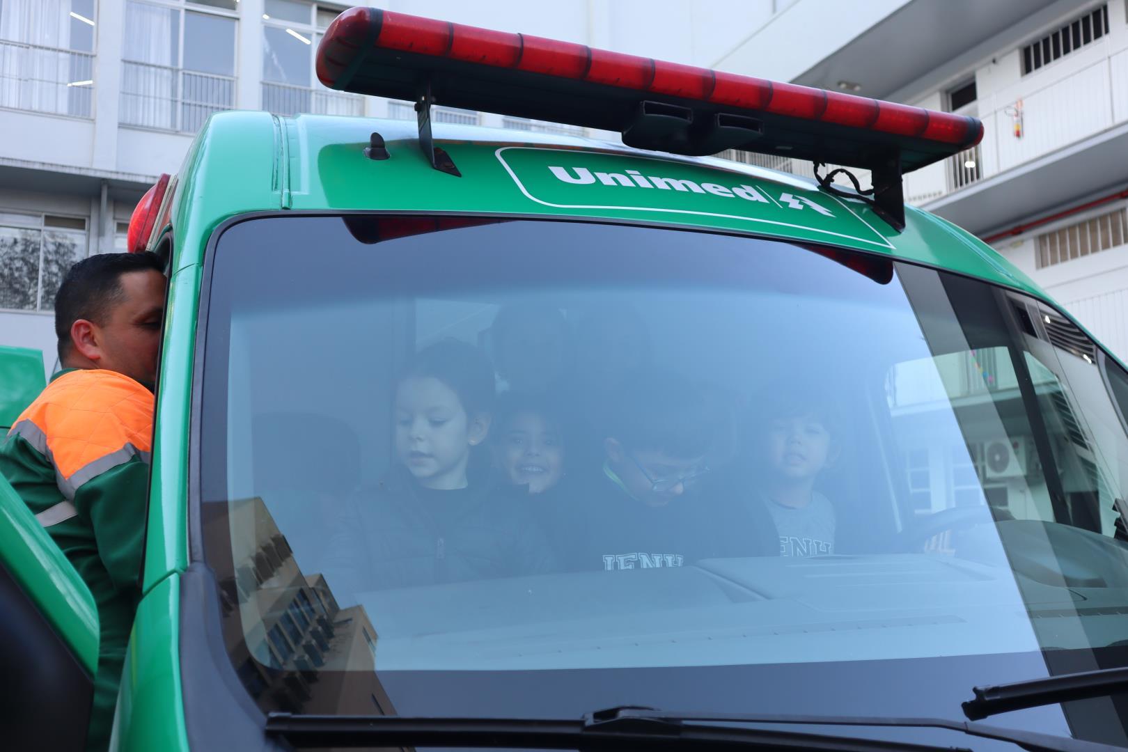 Uma ambulância da Unimed estacionou na IENH no dia 26 de junho e proporcionou uma experiência incrível para o Kindergarten 5B da Educação Infantil do Currículo Internacional Bilíngue da IENH – Unidade Oswaldo Cruz. A turma teve a oportunidade de conhecer de perto os equipamentos de primeiros socorros e descobrir como funciona o trabalho dos socorristas. A visita fez parte dos estudos da turma sobre o corpo humano.