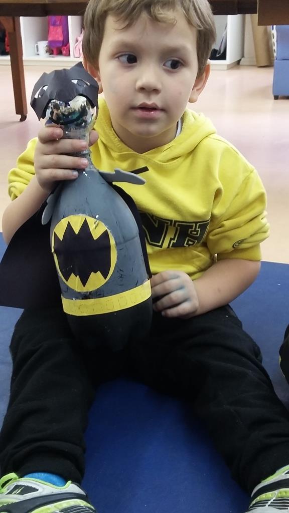 Integrando o projeto de estudos "Super-heróis, princesas e superamigos", os alunos do Nível 2 A da Educação Infantil da IENH - Unidade Oswaldo Cruz receberam como tema de casa a tarefa de criar com a família um super-herói ou uma princesa utilizando sucatas. Após a confecção, os estudantes também criaram um nome e poder/característica para o personagem.