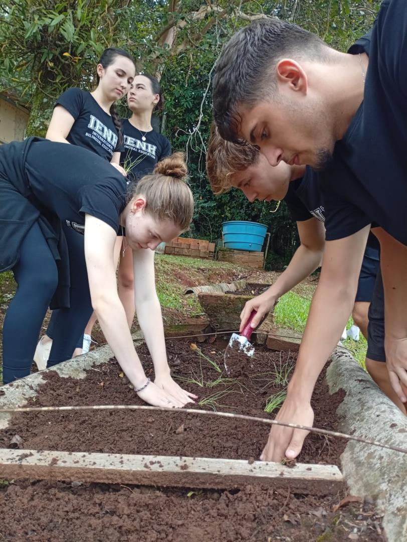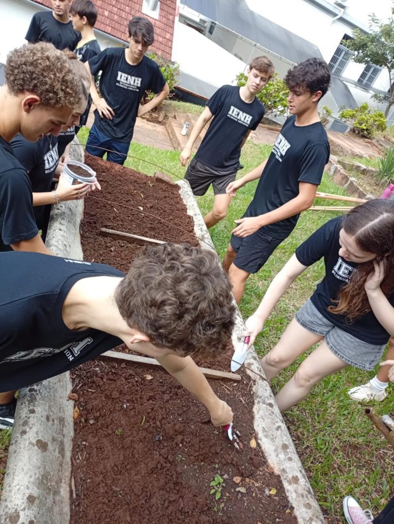 No dia 18 de março, os estudantes da 2nd grade do Ensino Médio da IENH – Unidade Fundação Evangélica vivenciaram uma proposta em que teoria e prática caminharam juntas, ressignificando o processo de aprendizagem. A atividade foi desenvolvida no componente curricular de Sustentabilidade e Educação Ambiental, do itinerário de Ciências da Natureza, que contou com a participação dos professores Ana Paula Müller Machado e Matheus Lenhnen e do consultor Ambiental Ubiraci Pottes de Mello.
