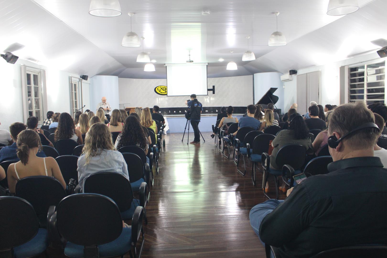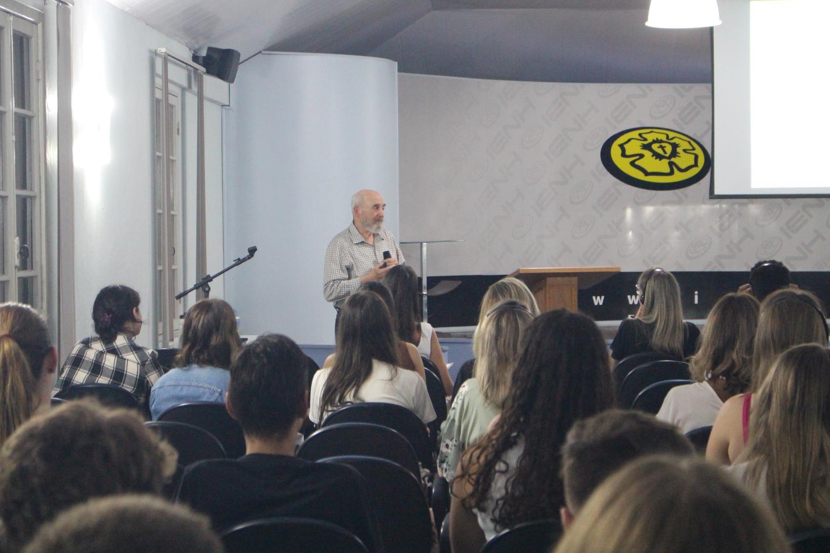 A aula inaugural do Curso de Psicologia da Faculdade IENH contou com uma palestra internacional, na noite do dia 17 de março, com o Professor David Rosenbaum, PhD em Psicologia pela Universidade da Califórnia. Ele abordou a ação, a mente e o cérebro como as três preocupações centrais da vida cotidiana.