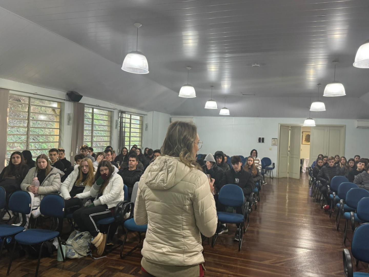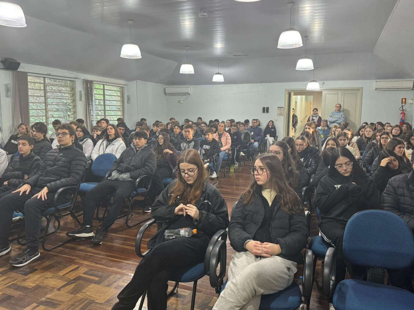 Na sexta-feira, 4 de julho, o Núcleo Pedagógico da IENH – Unidade Fundação Evangélica promoveu um encontro com os alunos do Ensino Fundamental do Currículo Internacional Bilíngue e do Ensino Médio, na Sala de Conferências, para avaliar o semestre letivo e retomar orientações importantes para a convivência escolar.
