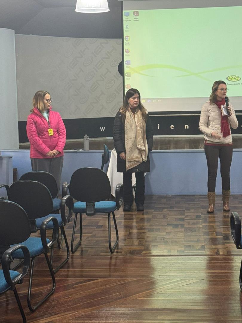 O encontro retomou temas abordados na fala institucional do primeiro dia de aula, destacando conquistas alcançadas até aqui e pontos que permanecem como desafios para o grupo. A coordenadora Pedagógica Jaqueline Schaeffer orientou sobre o acompanhamento das aulas e a importância de manter a organização neste encerramento de semestre.