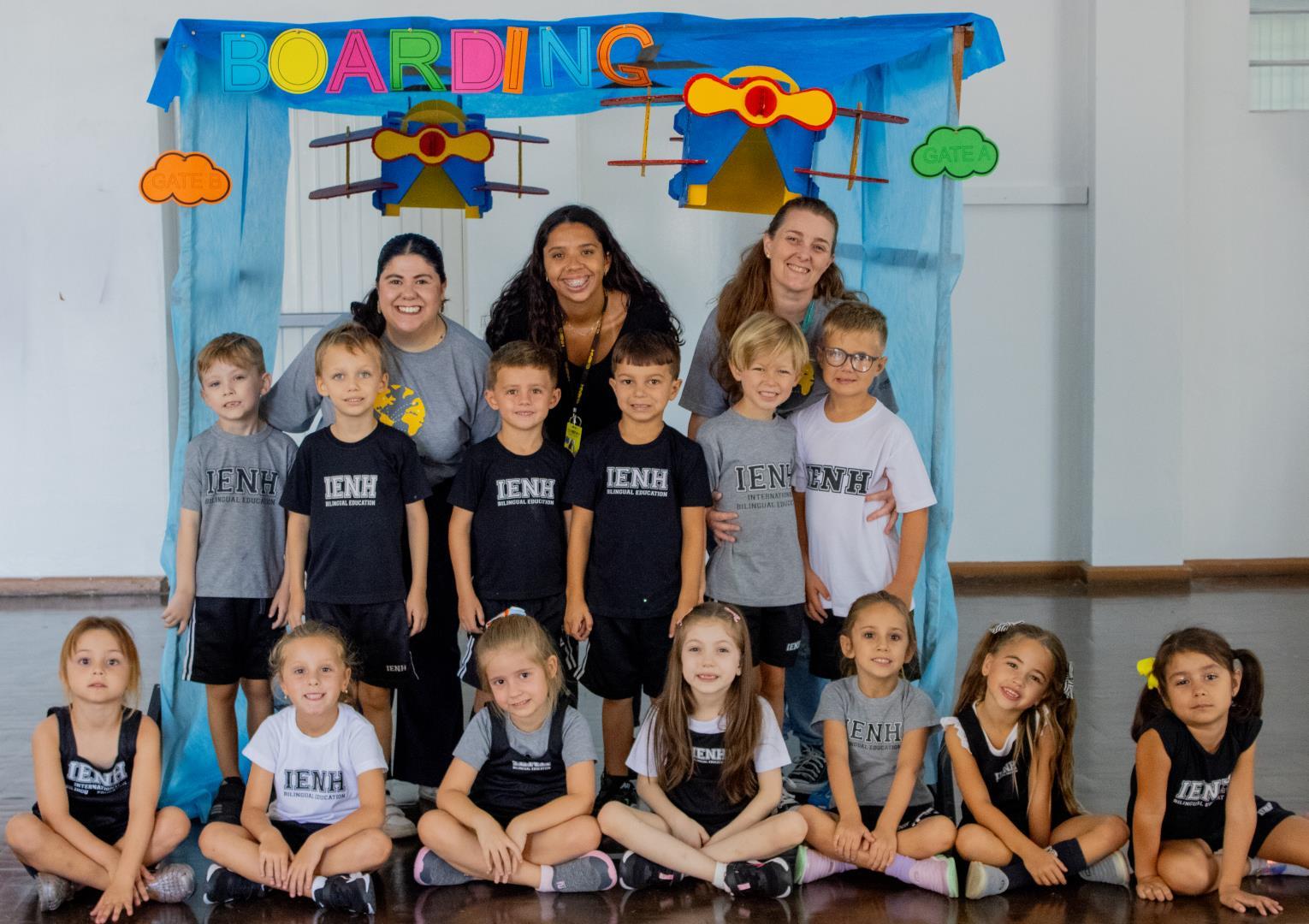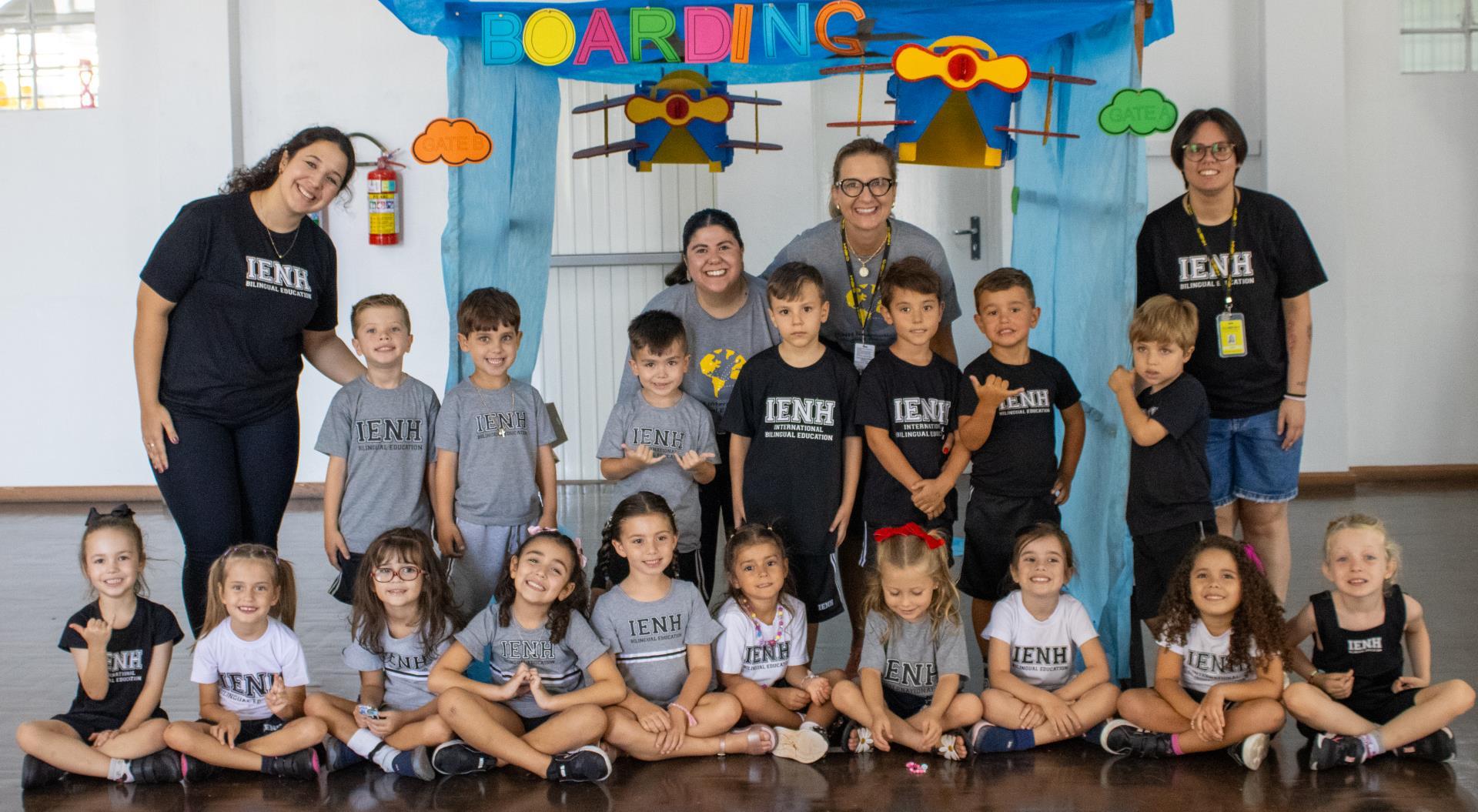 Durante a entrevista com os pais, realizada antes do início das aulas, as professoras do Kindergarten 5 da Educação Infantil do Currículo Internacional Bilíngue da IENH – Unidade Oswaldo Cruz entregaram às famílias um material especial de boas-vindas: uma mala de viagem simbólica. Dentro dela, havia um cartão-postal com a foto das professoras, um passaporte com algumas das vivências previstas para o ano e uma passagem que deveria ser apresentada no primeiro dia de aula.