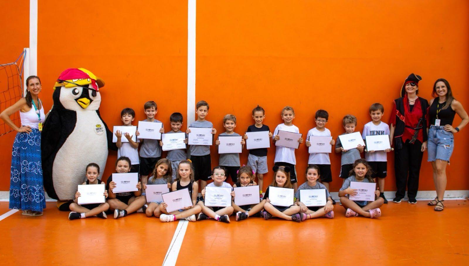 Após solucionarem todas as pistas, as crianças descobriram que o tesouro estava escondido junto à casinha do Sport Park. Acompanhados pelo pirata, seguiram até o local e, com entusiasmo, encontraram o “tesouro”: os cadernos que serão utilizados ao longo do ano letivo.