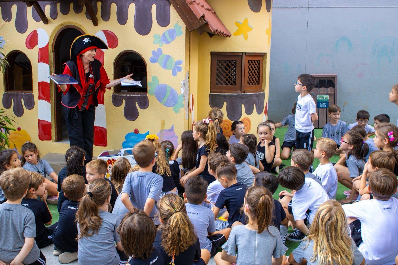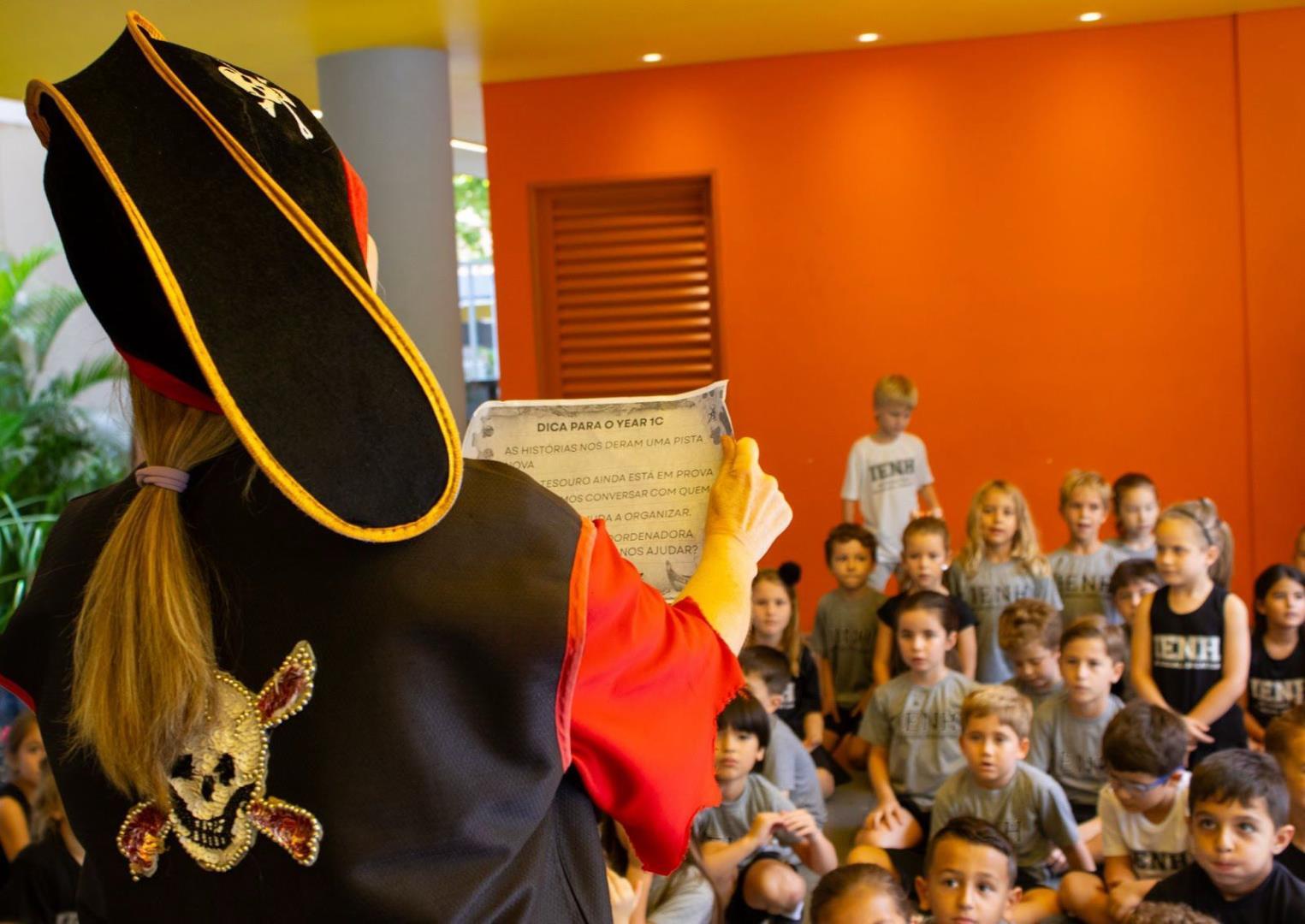 Na última quinta-feira, 12 de março, os estudantes das turmas de Year 1 do Ensino Fundamental do Currículo Internacional Bilíngue da IENH - Unidade Oswaldo Cruz viveram uma experiência especial durante a atividade “Special Treasure: em busca do tesouro”. A proposta ganhou ainda mais encanto com a visita do Billy, mascote do Currículo Internacional Bilíngue da IENH, que chegou acompanhado de um pirata para convidar as turmas a embarcarem em uma divertida caça ao tesouro.