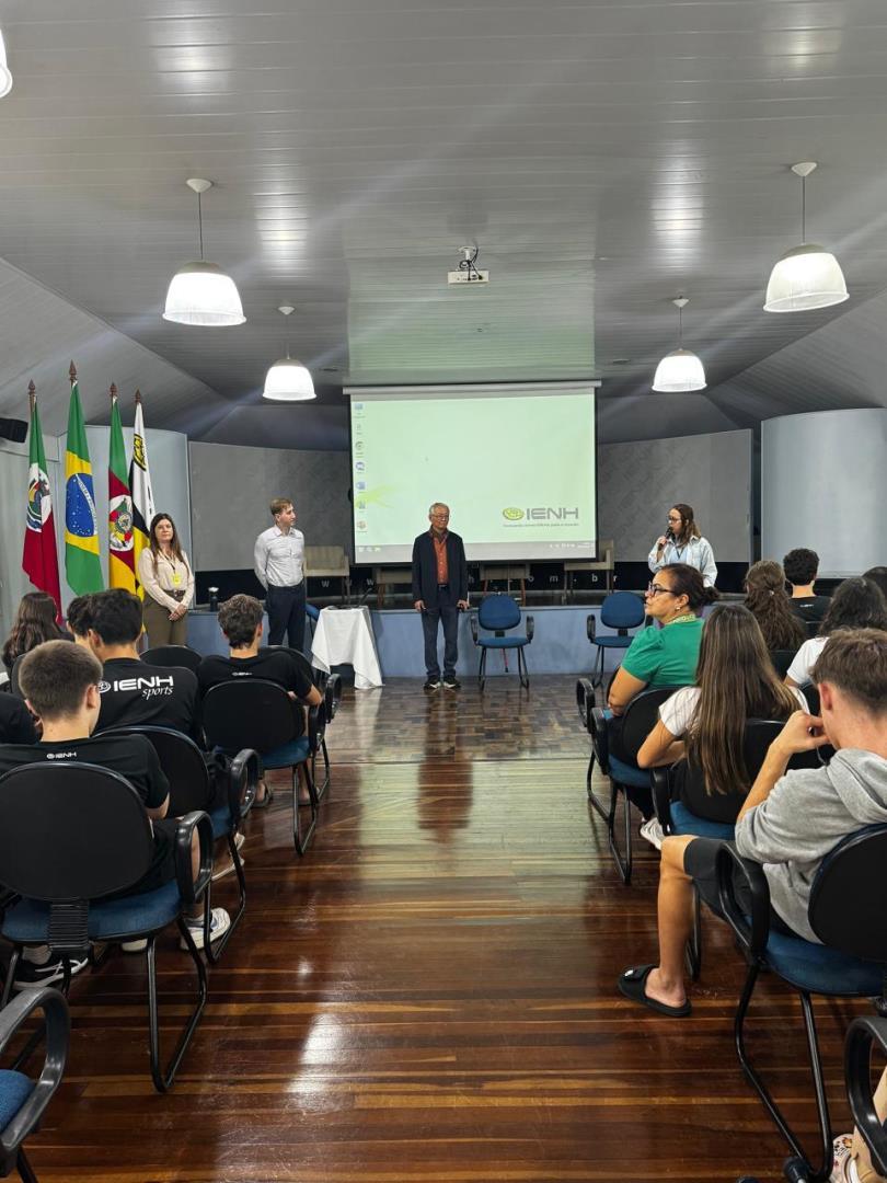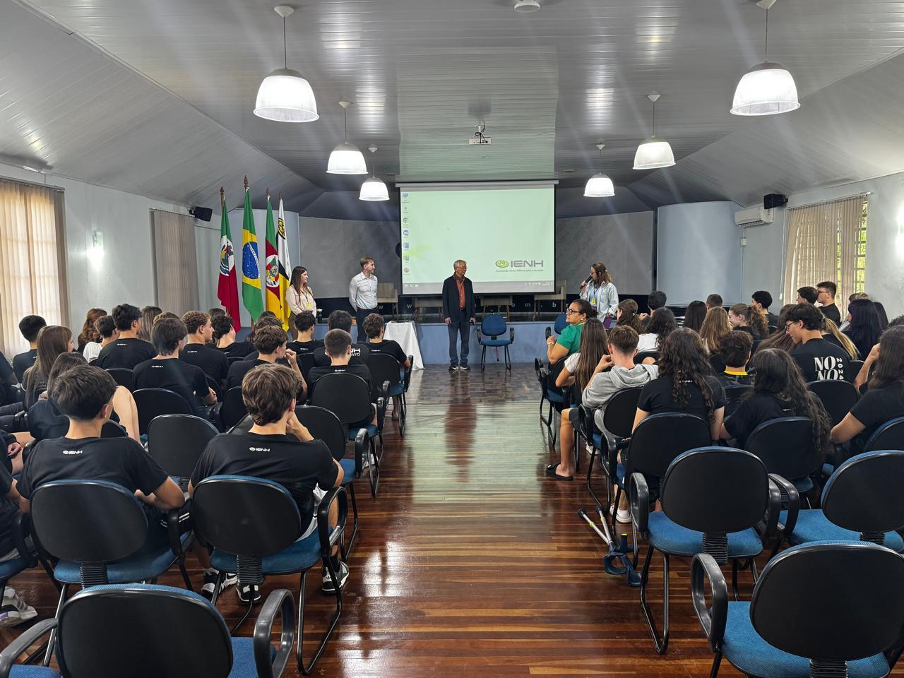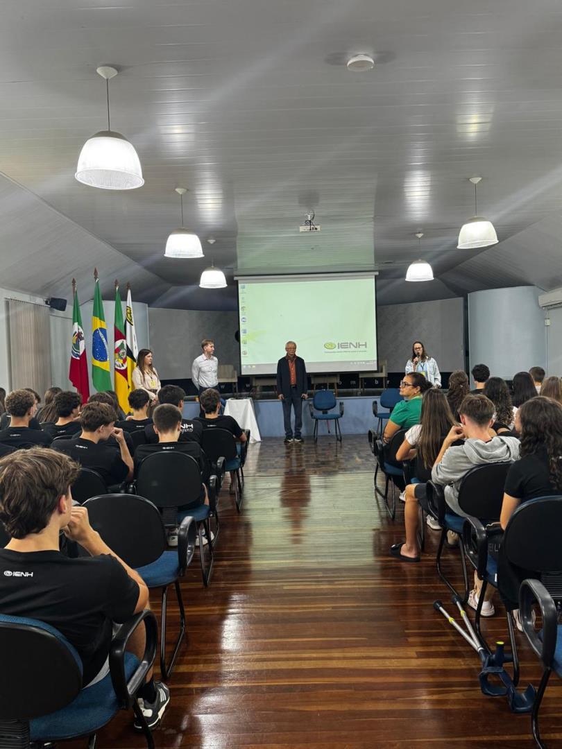 Durante o encontro, os estudantes também puderam conhecer a trajetória do ex-aluno da IENH Bernardo Leist Mosmann, que participou do intercâmbio da instituição no Canadá e, posteriormente, decidiu seguir seus estudos no país. Hoje, Bernardo se destaca por seu desempenho acadêmico, tendo conquistado bolsas de estudo e reconhecimento em sua trajetória educacional.