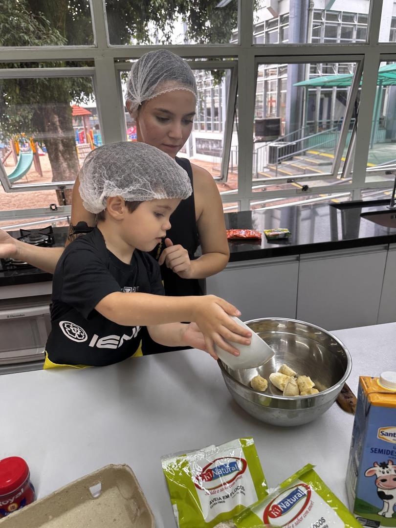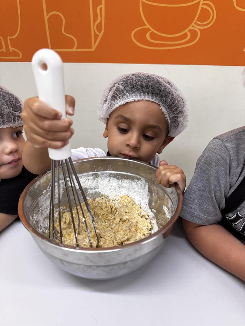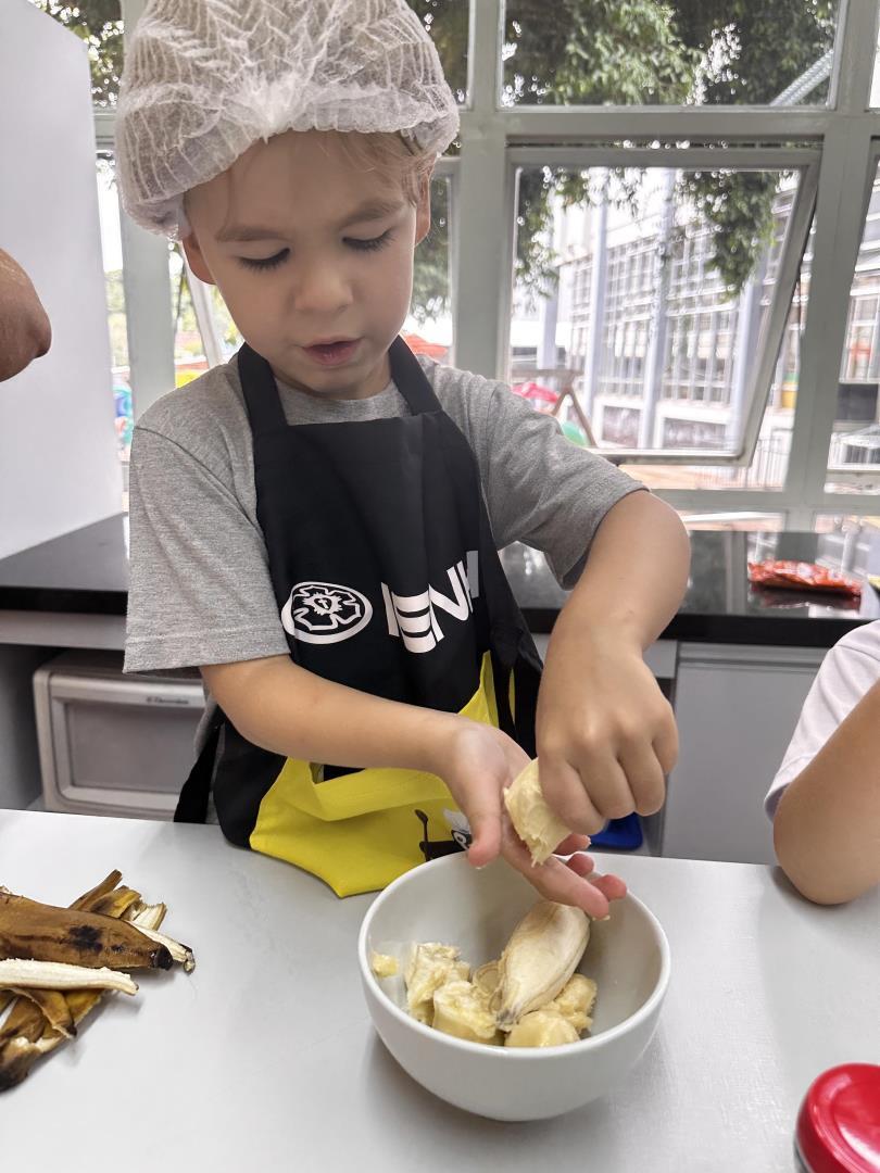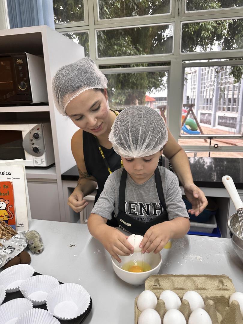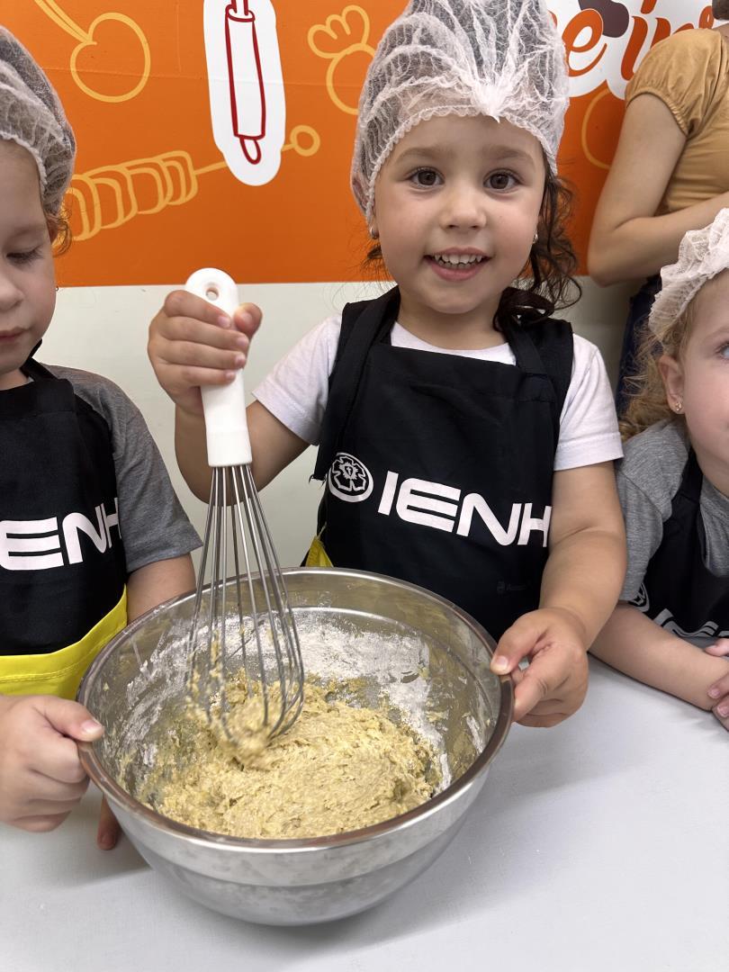 No dia 25 de março, as crianças do Kindergarten 3B da Educação Infantil do Currículo Internacional Bilíngue da IENH – Unidade Pindorama participaram de uma Cooking Class especial na Cozinha Escola, unindo literatura e experiências práticas em uma proposta envolvente e significativa.