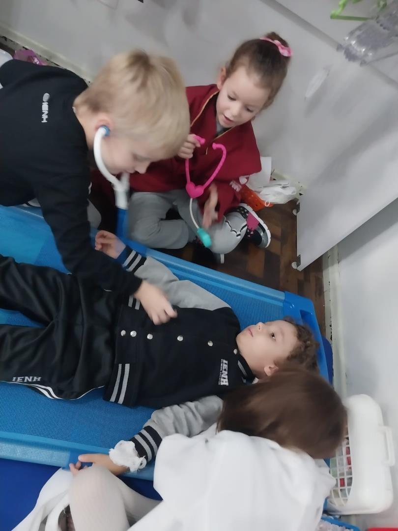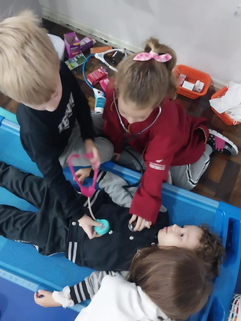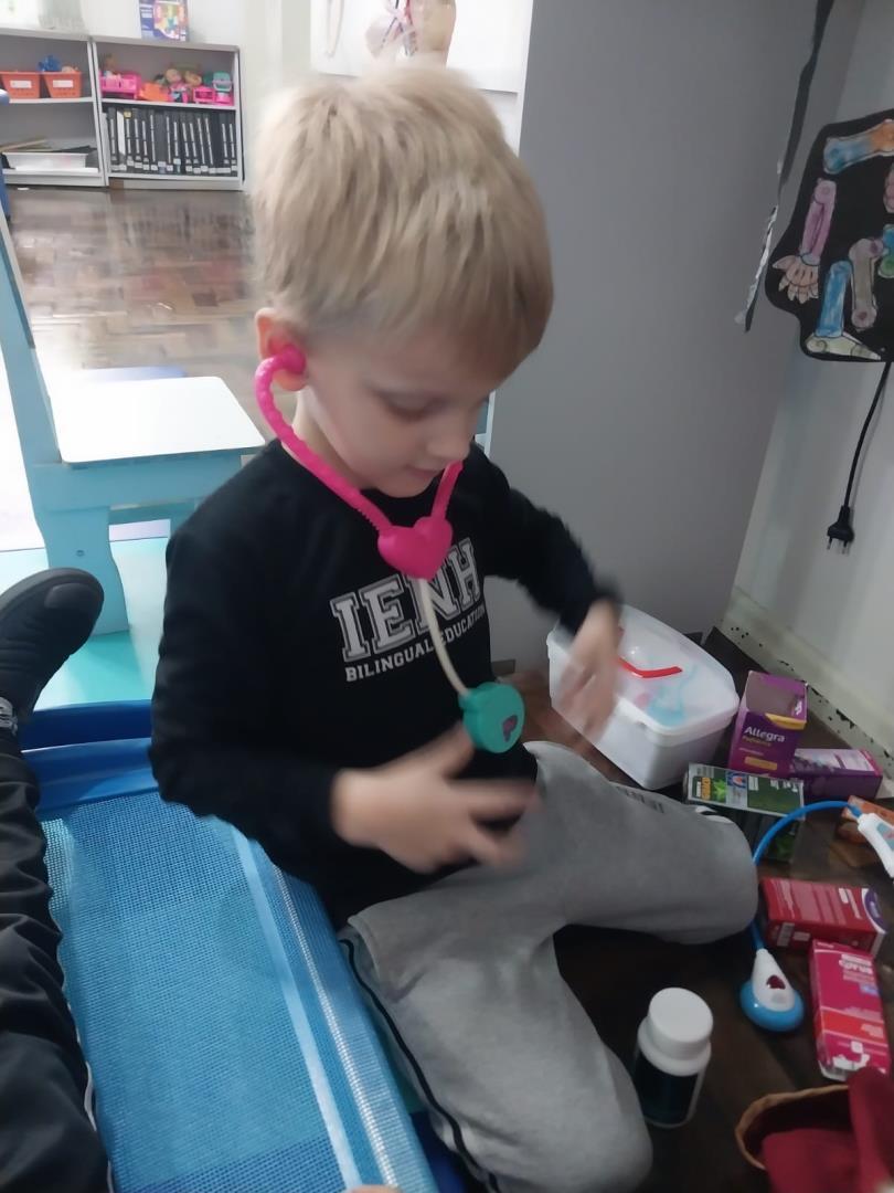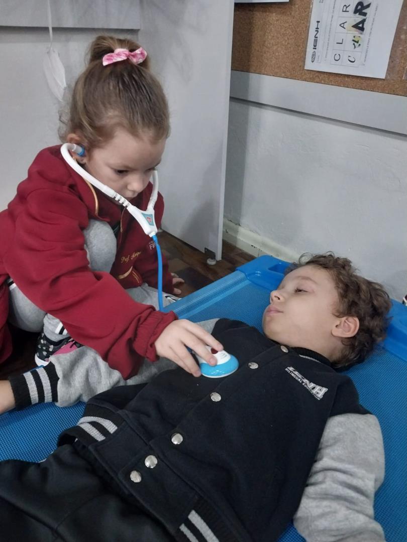 Além das atividades planejadas, os contextos brincantes organizados em sala – com modelos anatômicos e ferramentas hospitalares – deram asas à imaginação e tornaram o aprendizado ainda mais envolvente. Em todos os momentos, o projeto promoveu a colaboração entre pares, incentivando o respeito, o diálogo e o encantamento pelo saber.