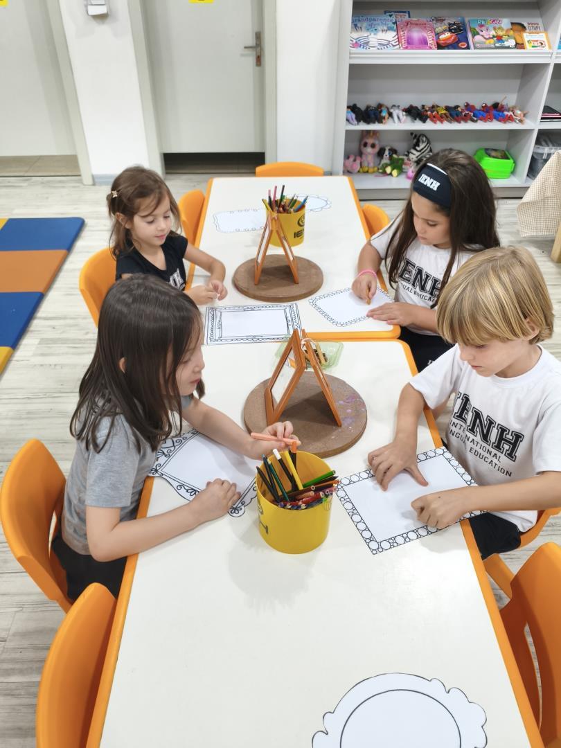 As crianças do Kindergarten 4A da Educação Infantil do Currículo Internacional Bilíngue da IENH – Unidade Oswaldo Cruz deram início ao projeto investigativo “Who Am I? Meu lugar no mundo: descobrindo quem eu sou”, com o objetivo de favorecer as primeiras construções da identidade, incentivando o reconhecimento de si mesmas, de seus nomes, características e histórias. A proposta busca promover experiências significativas que estimulem a oralidade, a expressão e o sentimento de pertencimento ao grupo.
