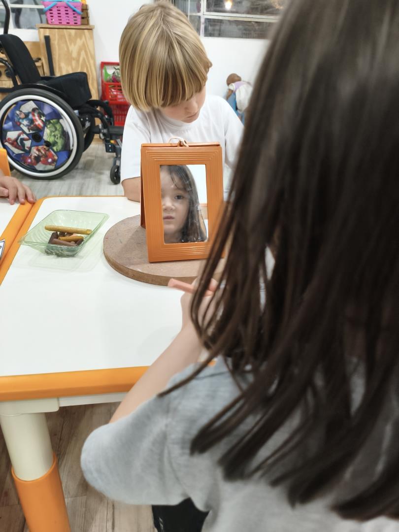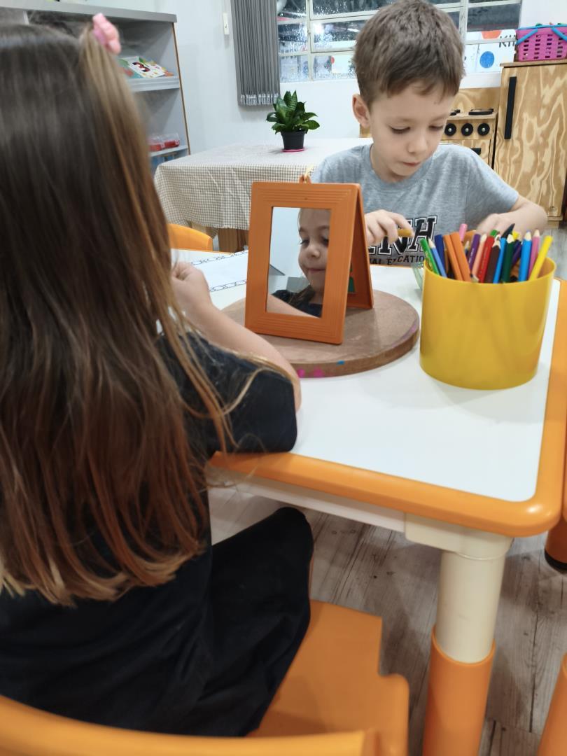 O projeto surgiu a partir das curiosidades manifestadas pelas próprias crianças durante as rodas de conversa, especialmente sobre seus nomes, sobrenomes e identidades. Neste primeiro momento, o grupo está envolvido em descobertas iniciais sobre o “eu”, explorando quem são por meio de vivências como a observação no espelho, produções de autorretratos e identificação dos nomes em diferentes contextos da rotina escolar.