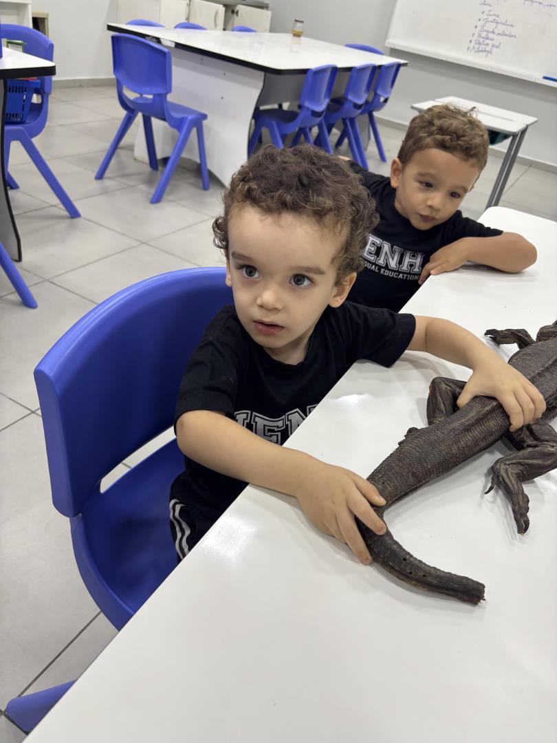 A atividade faz parte do projeto de estudos da turma, intitulado “Discovering the World of Reptiles: Adventures in Kindergarten 2”, e teve como objetivo despertar o interesse pela pesquisa e pela observação científica desde os primeiros anos escolares.