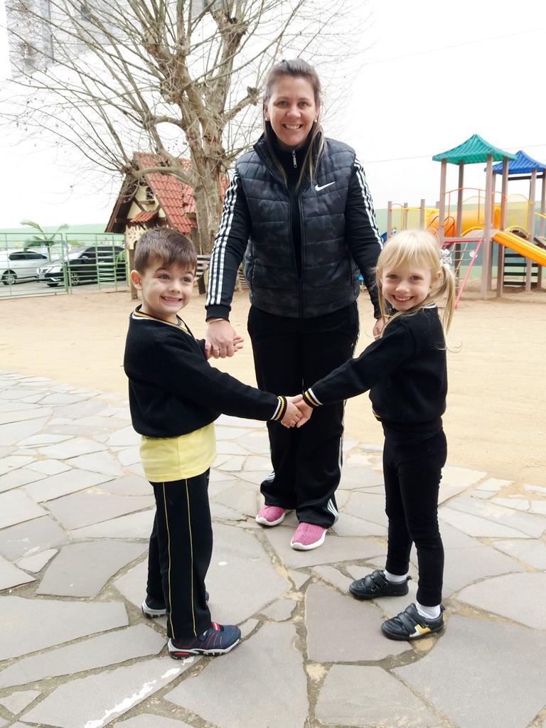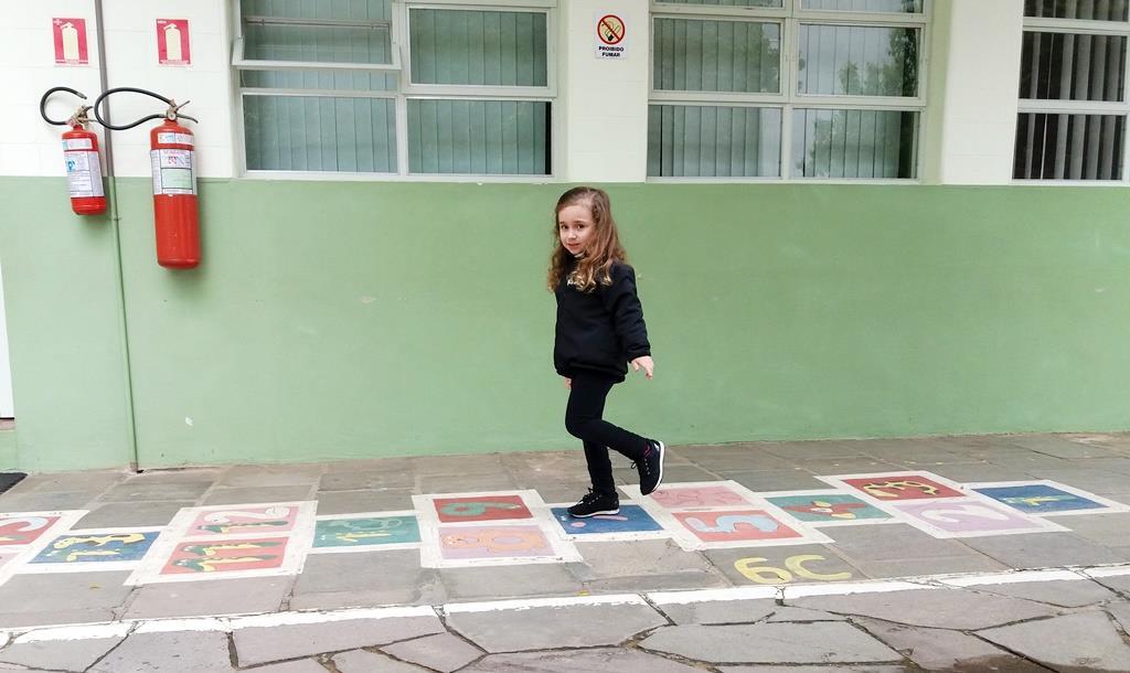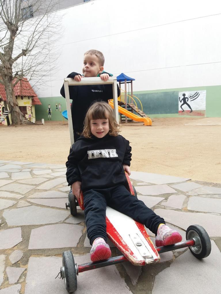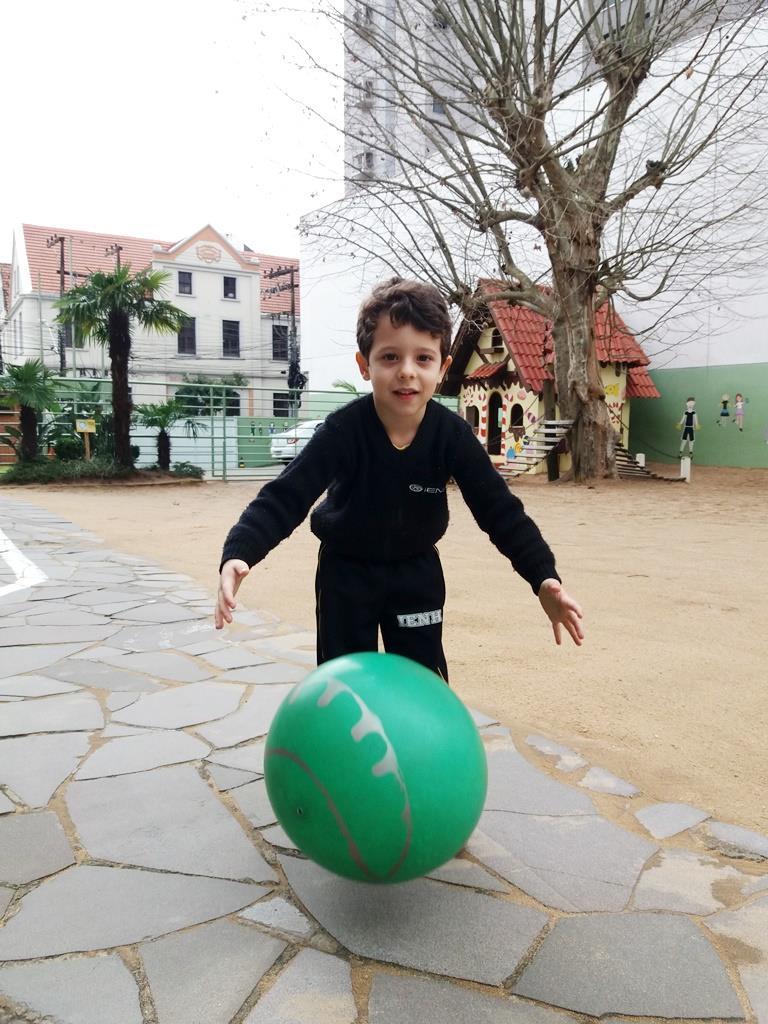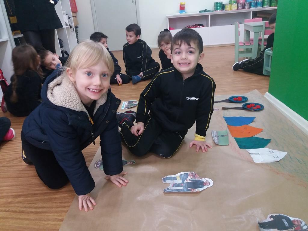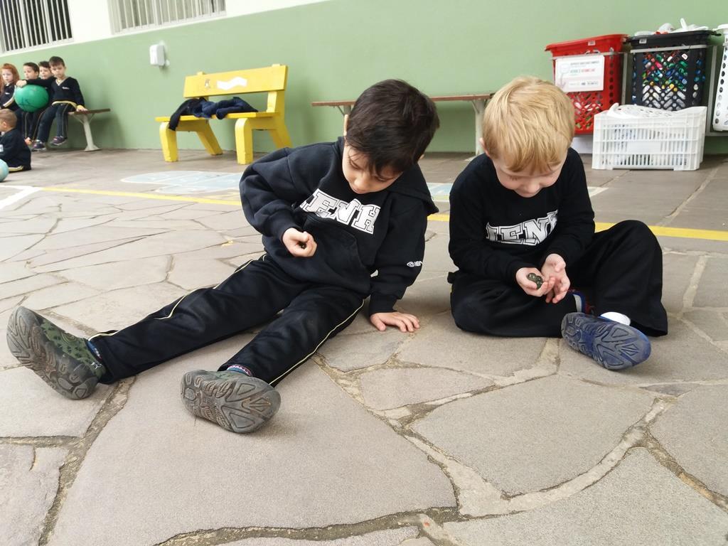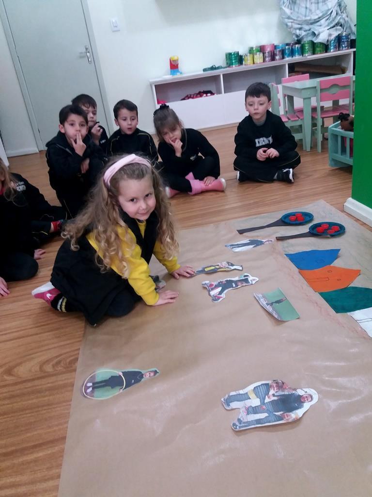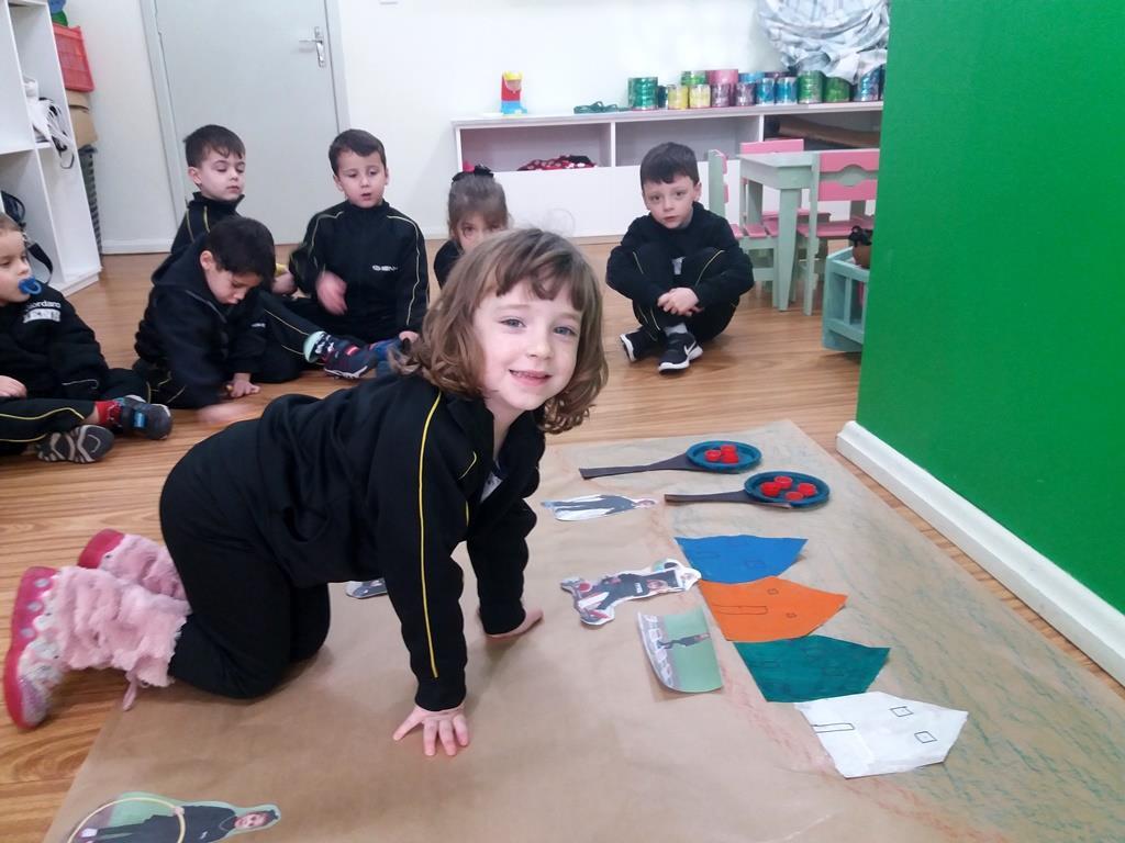 No dia 21 de agosto, as Professoras Vanessa Ferrentz e Jaqueline Grassmann apresentaram a obra do artista Ivan Cruz, intitulada “Crianças na praça”, pedindo que os alunos observassem as brincadeiras retratadas através da pintura. Logo, o grupo conversou sobre o artista, sobre a importância de brincar como lazer e como aprendizagem, valorizando as brincadeiras que passam de geração para geração. Após, as Professoras sugeriram que a turma realizasse uma releitura da obra, interpretando e reproduzindo as brincadeiras vistas ali, vivenciando-as e registrando as mesmas através de fotografia.