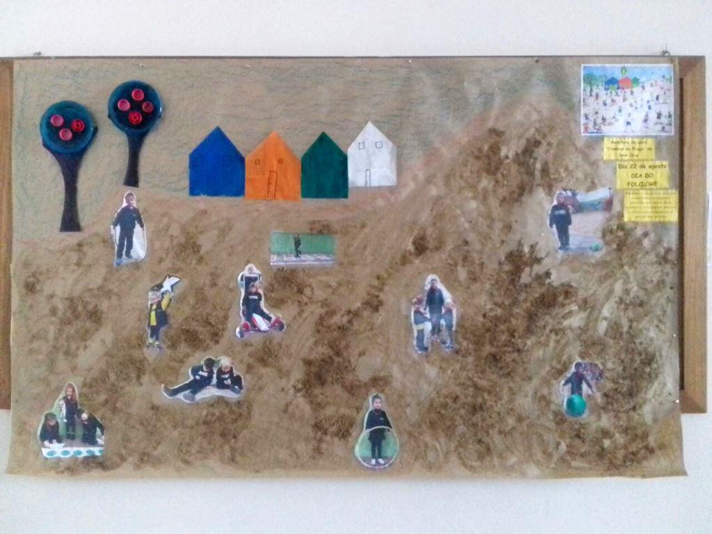 No dia seguinte, 22 de agosto, em que é comemorado o Dia do Folclore, os estudantes finalizaram a atividade, criando um cartaz coletivo. De acordo com a Professora Vanessa, a turma gostou muito da atividade, participando da proposta com interesse e alegria. “Adoraram reproduzir as cenas da obra do artista, brincando no pátio da escola. Depois, orgulhosos, chamavam uns aos outros para mostrar a sua fotografia no cartaz, contando qual brincadeira representaram”, relata Vanessa.
