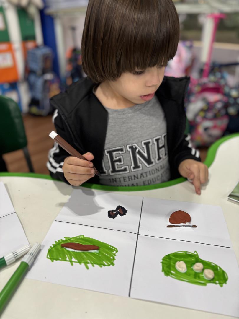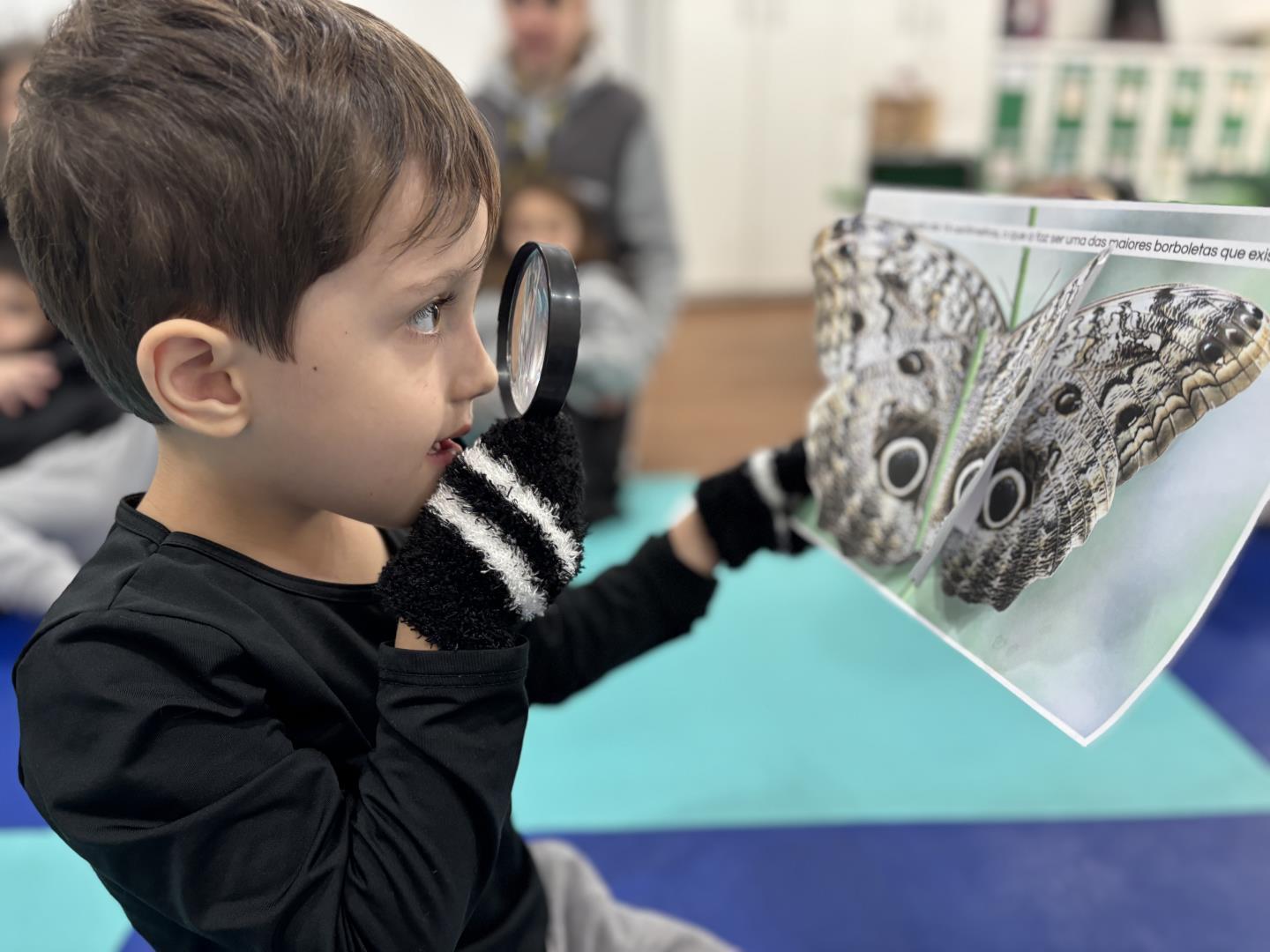 Com o objetivo de desenvolver a curiosidade científica, a atenção aos detalhes e a capacidade de observação, as crianças do Kindergarten 4A da Educação Infantil do Currículo Internacional Bilíngue da IENH – Unidade Pindorama mergulharam em uma sequência de atividades lúdicas e investigativas sobre estratégias de camuflagem na natureza, com destaque especial para a borboleta-coruja.