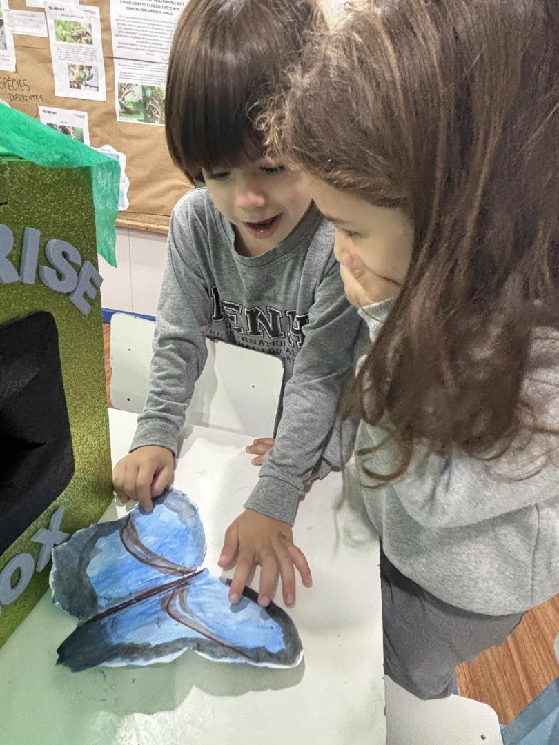 Como elemento surpresa, uma dinâmica especial encantou a turma: cada criança foi convidada a manipular, com cuidado, um exemplar do inseto e fazer uma descoberta inesperada. “A surpresa provocou novas hipóteses, curiosidades e encantamento com os mistérios da natureza”, conta Flavia.
