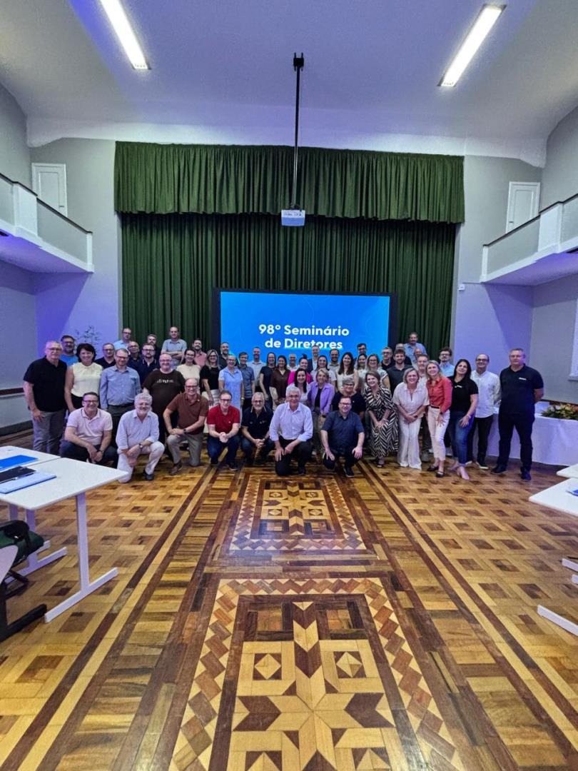 O diretor geral da IENH, Seno Leonhardt, e a vice-diretora da Educação Básica, Déborah Cassel, participaram do 98º Seminário de Diretores da Rede Sinodal de Educação, realizado no CECREI, em São Leopoldo. Durante o encontro, foi apresentado o calendário de eventos de 2026, contemplando professores, equipes pedagógicas, pastoral, funcionários, mantenedora e estudantes da Rede Sinodal. Entre os destaques está o Congresso de Professores, que ocorrerá em julho, em Santa Cruz do Sul, no Colégio Mauá.