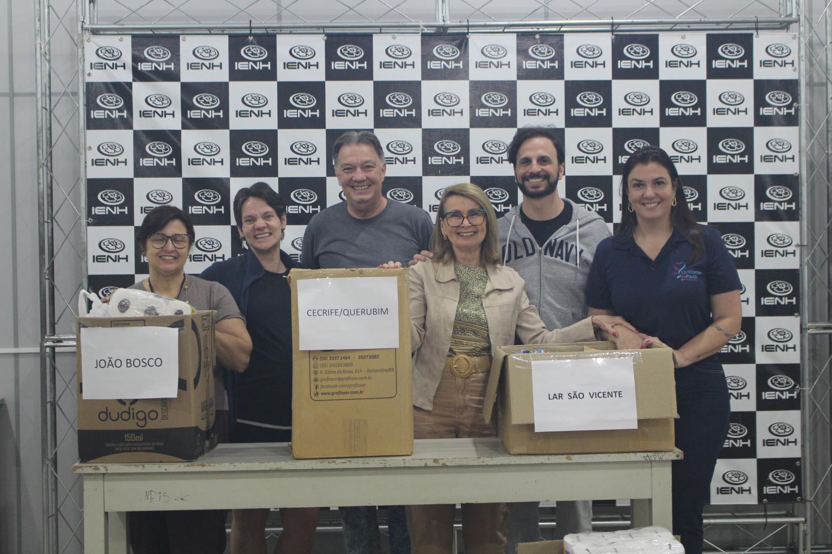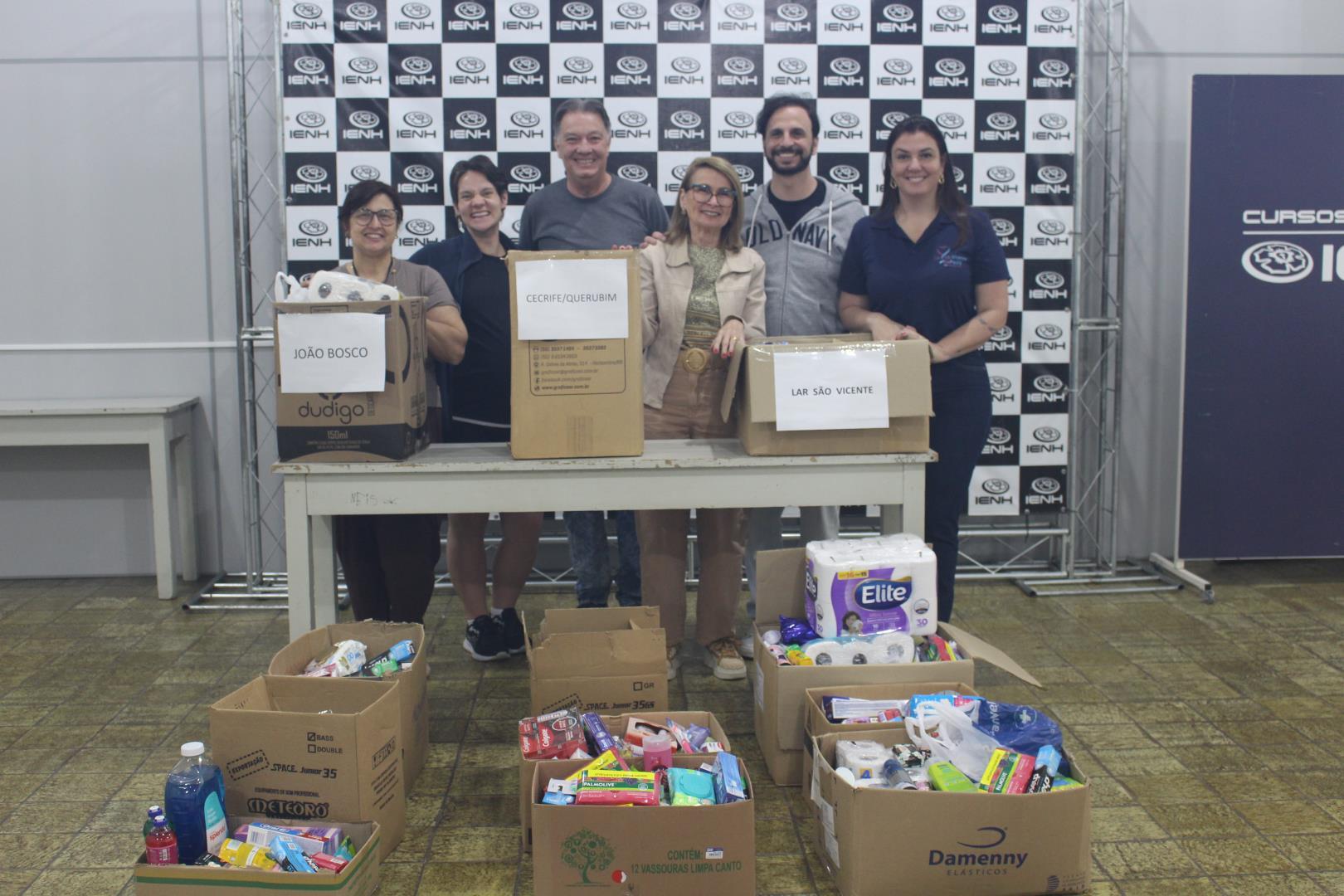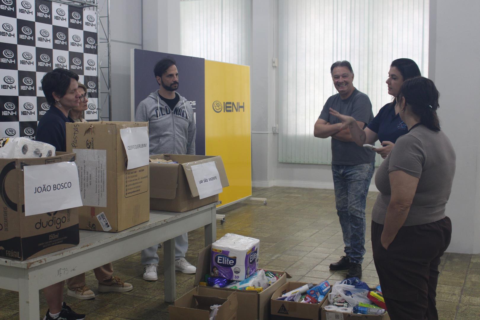 Mais de 400 itens de higiene pessoal foram arrecadados durante a Mostra de Dança e Teatro da IENH e entregues no dia 28 de outubro aos lares beneficiados. A entrega ocorreu na IENH - Unidade Fundação Evangélica e contou com a presença da coordenadora do Programa Socioambiental da IENH, Isabel Lizakoski, e dos professores Fábio Ferraz e Alessandra Feltes.