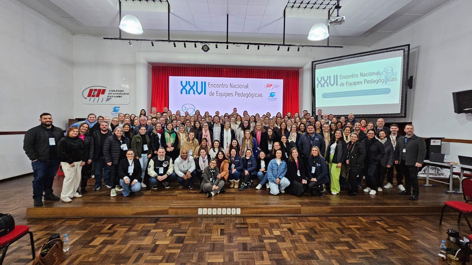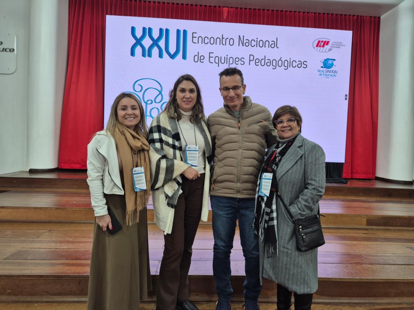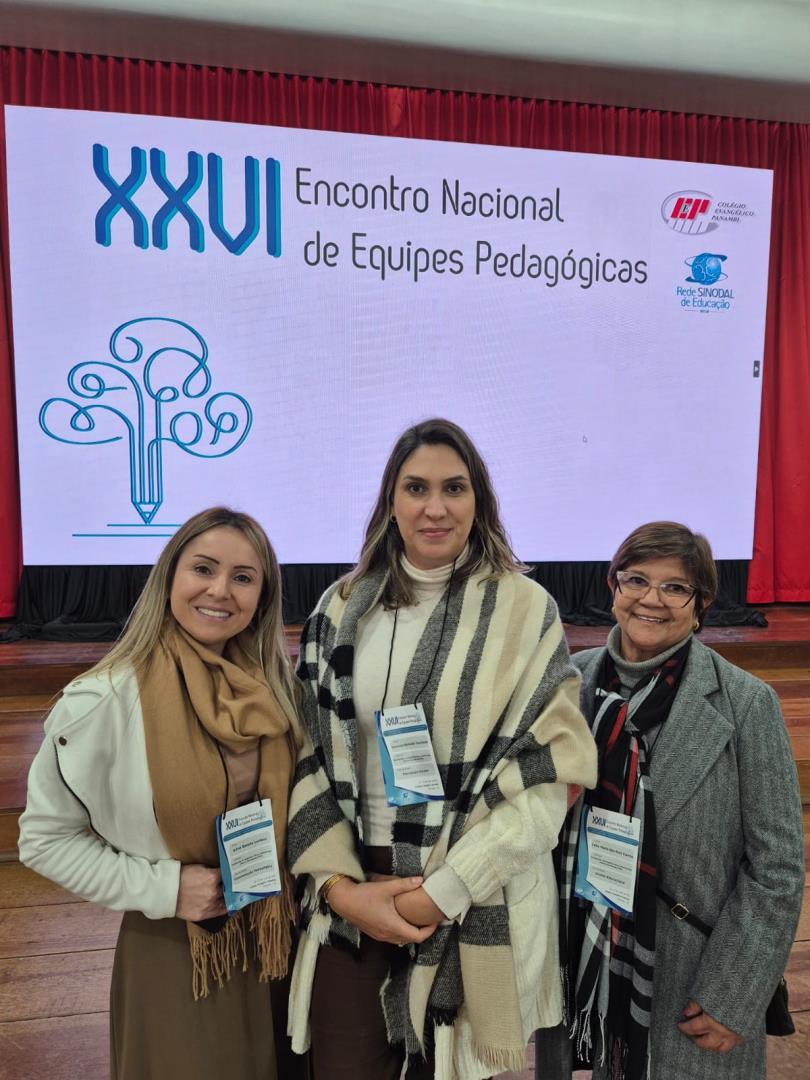 Nos dias 30 e 31 de maio, a cidade de Panambi, no Rio Grande do Sul, foi palco do XXVI Encontro Nacional de Equipes Pedagógicas da Rede Sinodal de Educação, realizado no Colégio Luterano Panambi. A IENH esteve representada no evento pela coordenadora pedagógica da Educação Infantil da Unidade Pindorama, Aline Baioto Lunkes, a psicóloga Escolar da Unidade Oswaldo Cruz, Vanessa Vauchinski, e a coordenadora da Unidade Oswaldo Cruz, Célia Corrêa.