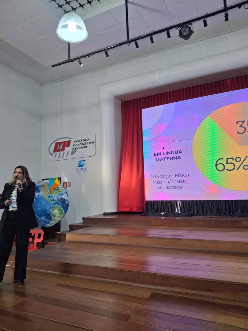 Um dos destaques da participação da IENH foi a contribuição de Aline Baioto Lunkes, Célia Corrêa e  Vanessa Vauchinski, que apresentaram o Currículo Internacional Bilíngue da IENH em um momento especial do evento. “A apresentação ressaltou a proposta pedagógica inovadora da Instituição”, reforça Vanessa.