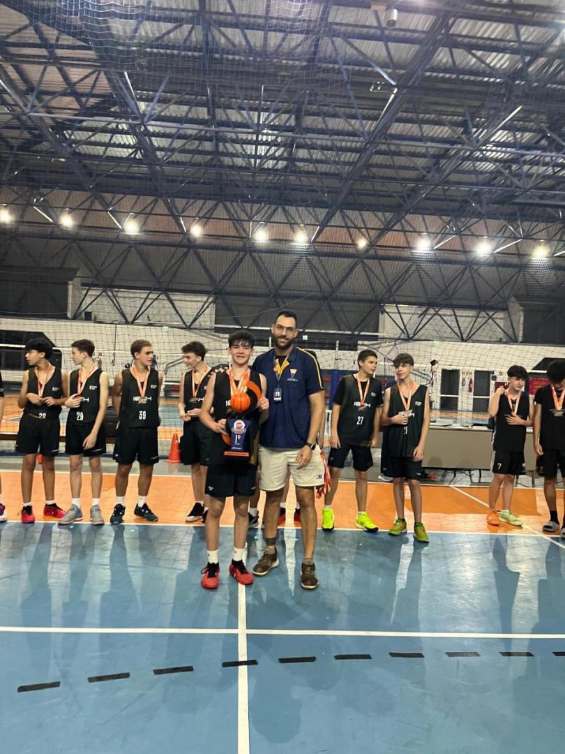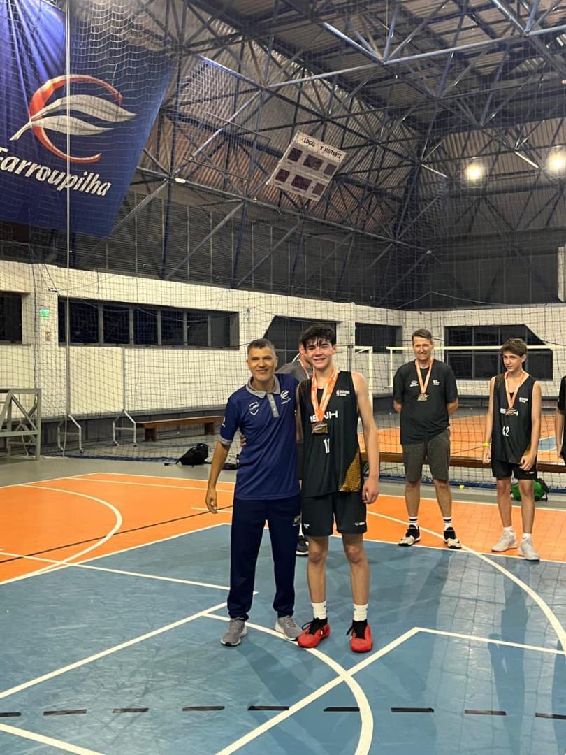 A equipe Sub15 de basquete da IENH conquistou o título de campeã da categoria Infantil Masculino da Copa Farroupilha 2025 e revelou como destaque da final o atleta Artur Garcia, que também foi eleito melhor jogador da categoria e cestinha da competição, com 77 pontos convertidos.