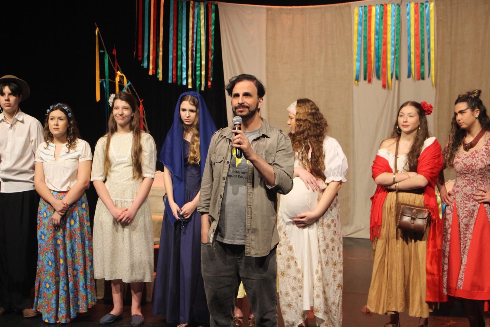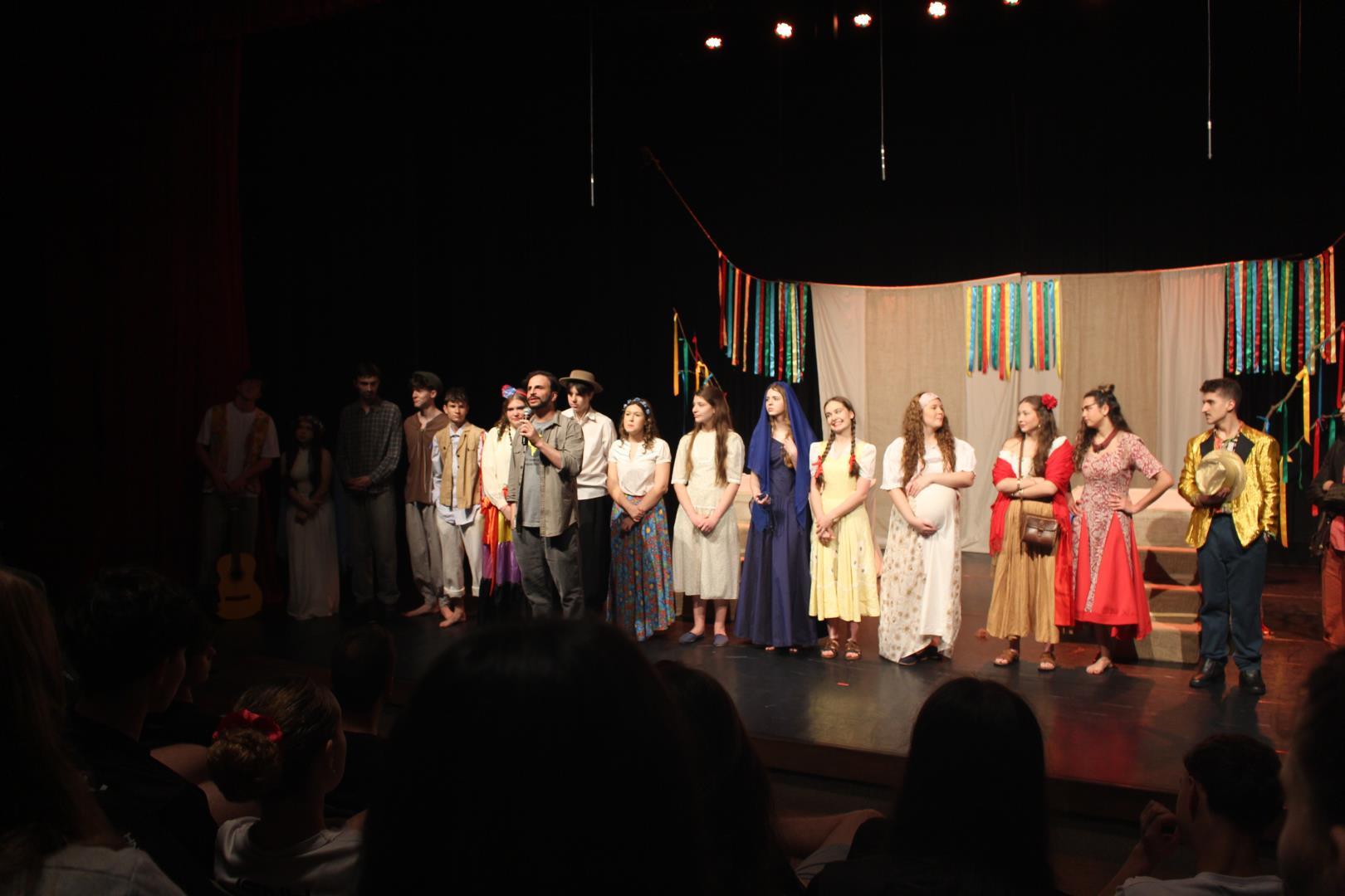 Com direção do professor Fábio Ferraz, a peça levou ao palco uma jornada poética e simbólica pela diversidade cultural brasileira. Por meio da trajetória da personagem Maria, os atores convidaram o público a revisitar as riquezas do país, destacando tradições, ritmos e expressões populares que compõem a identidade nacional.