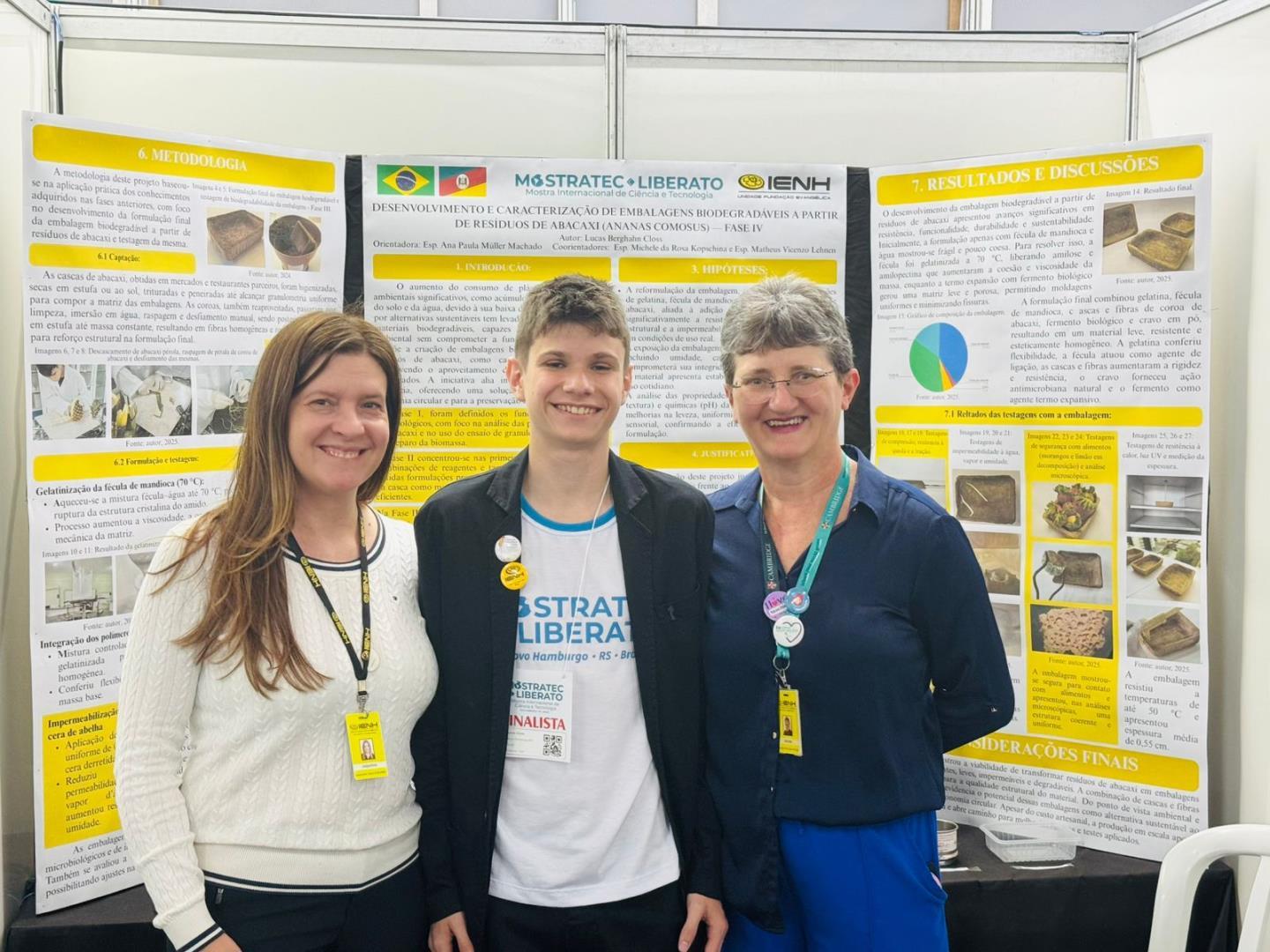 A IENH marcou presença com trabalhos desenvolvidos por alunos das Unidades Pindorama, Oswaldo Cruz e Fundação Evangélica, que apresentaram pesquisas criativas e comprometidas com temas de relevância social, ambiental e educacional.