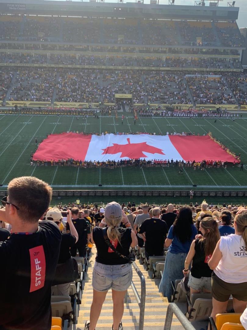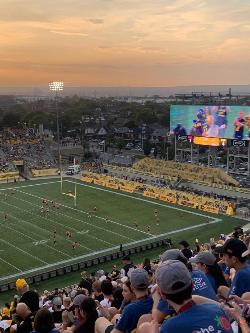 Quando chegou o sábado, dia 12 de julho, os estudantes tiveram um brunch na residência, jogaram e, no fim da tarde, foram assistir ao jogo do time de Hamilton, Tiger Cats, de futebol americano. Vibraram no estádio e conheceram mais sobre esse esporte.