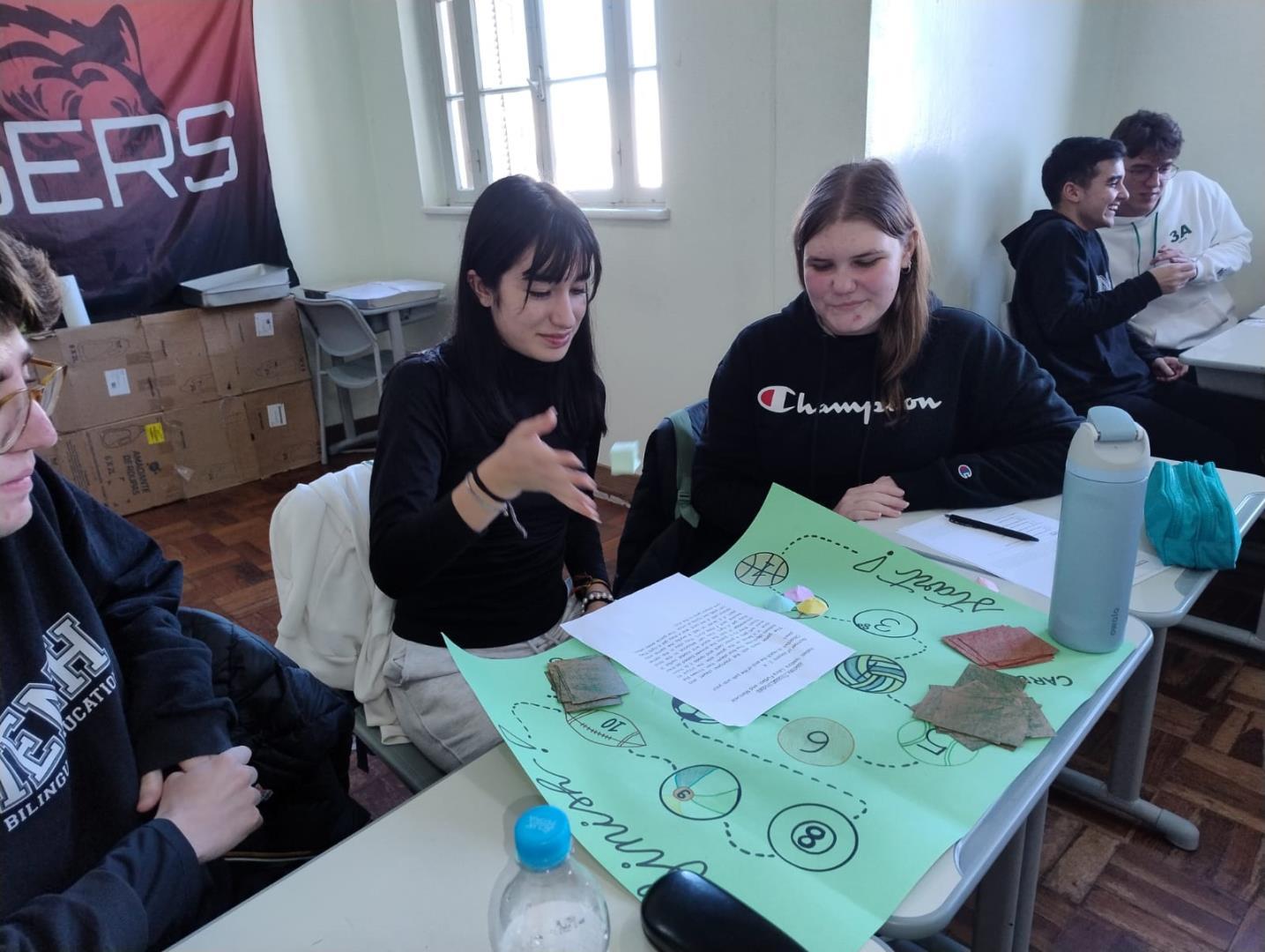 Como forma criativa de revisar conteúdos essenciais para a escrita, os estudantes da 3rd grade da turma 3A do Ensino Médio da IENH – Unidade Fundação Evangélica no Itinerário de Internacionalização, participaram de uma atividade especial no componente curricular de Advanced Writing. A proposta desafiou os grupos a transformar regras gramaticais em jogos, unindo aprendizado e diversão.