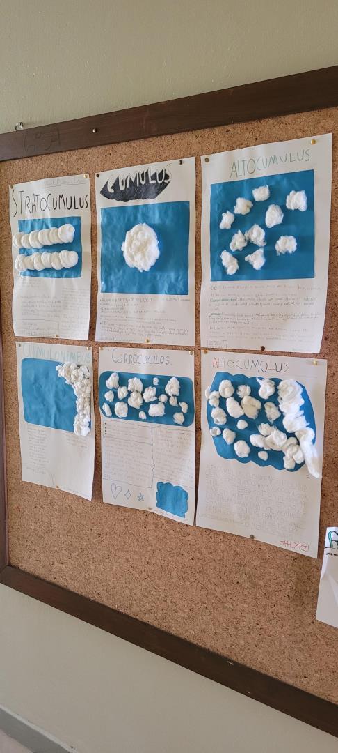 Como culminância do projeto, cada grupo produziu um pôster representando um tipo específico de nuvem, apresentando informações sobre sua formação, aparência e curiosidades. As apresentações em sala permitiram que todos compartilhassem suas descobertas e consolidassem o aprendizado de forma coletiva e dinâmica.