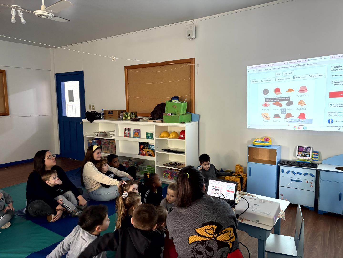 Inspirados pela história e pelo famoso chapéu do personagem principal, os estudantes ampliaram a proposta pedagógica em uma atividade que explorou o universo dos chapéus. Eles foram incentivados a observar, investigar e conversar sobre diferentes tipos, suas funções, formatos, cores, materiais e significados culturais.