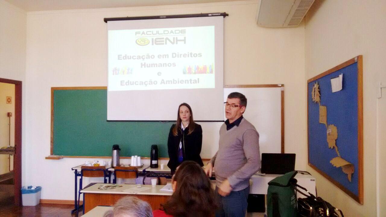 Realizado no Instituto de Formação de Professores de Língua Alemã (IFLPA), em Ivoti, o evento teve como temática os aspectos ligados aos requisitos legais e normativos. No momento das atividades de compartilhamento, em que cada Instituição trouxe cases dos seus projetos, a Faculdade IENH realizou a apresentação “Educação em direitos humanos: políticas de Educação Ambiental”.