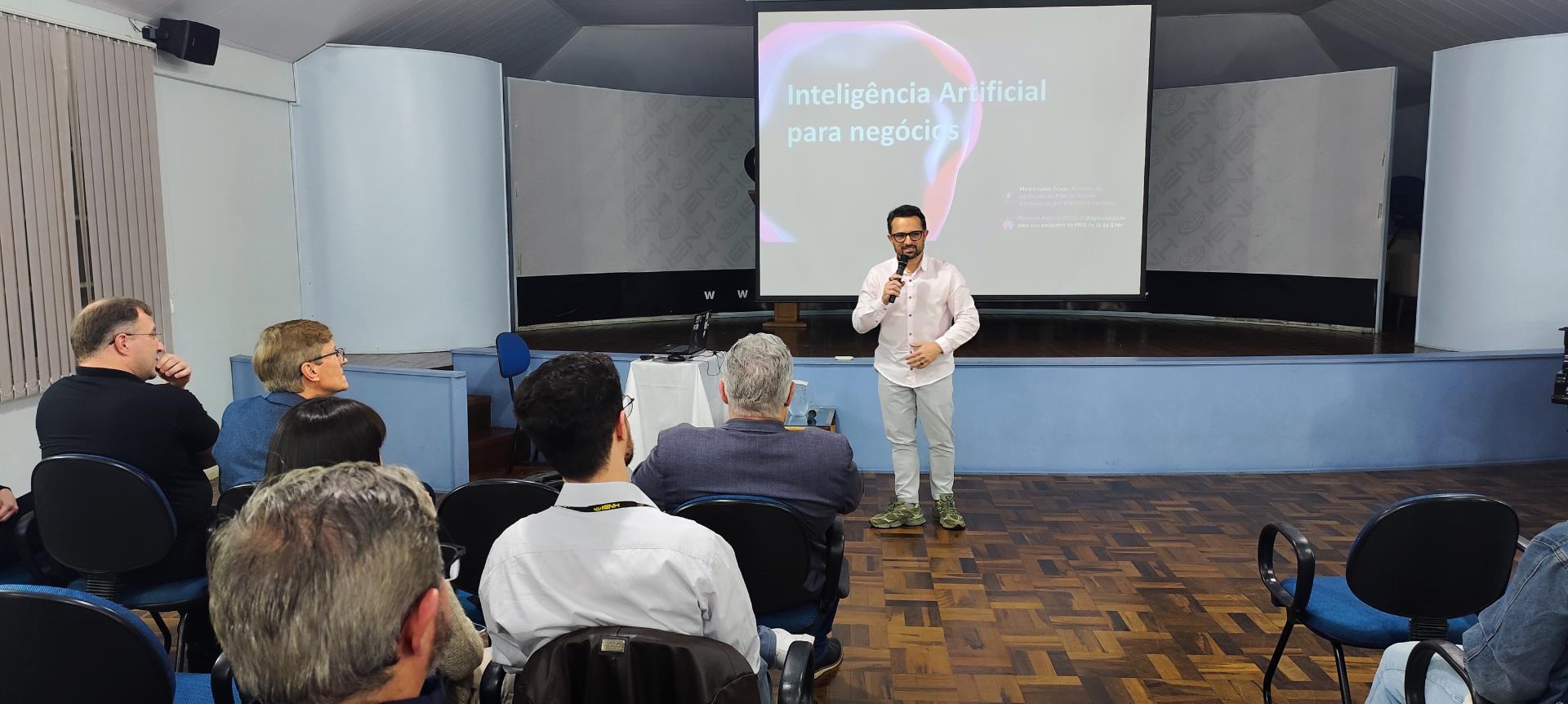 Na noite do dia 10 de setembro, a Faculdade IENH sediou a aula aberta “IA para Negócios”, reunindo profissionais e estudantes interessados em compreender como a Inteligência Artificial já está transformando empresas e criando novas oportunidades de crescimento. O evento foi realizado na Sala de Conferências da instituição, em formato presencial e gratuito.