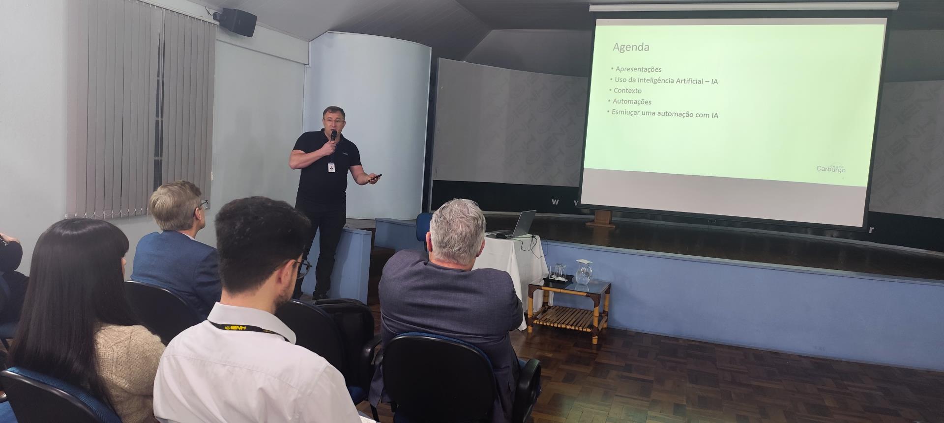 • André Scheibe, Gerente de TI do Grupo Carburgo, que compartilhou experiências práticas sobre o uso de IA em processos internos e no relacionamento com clientes.