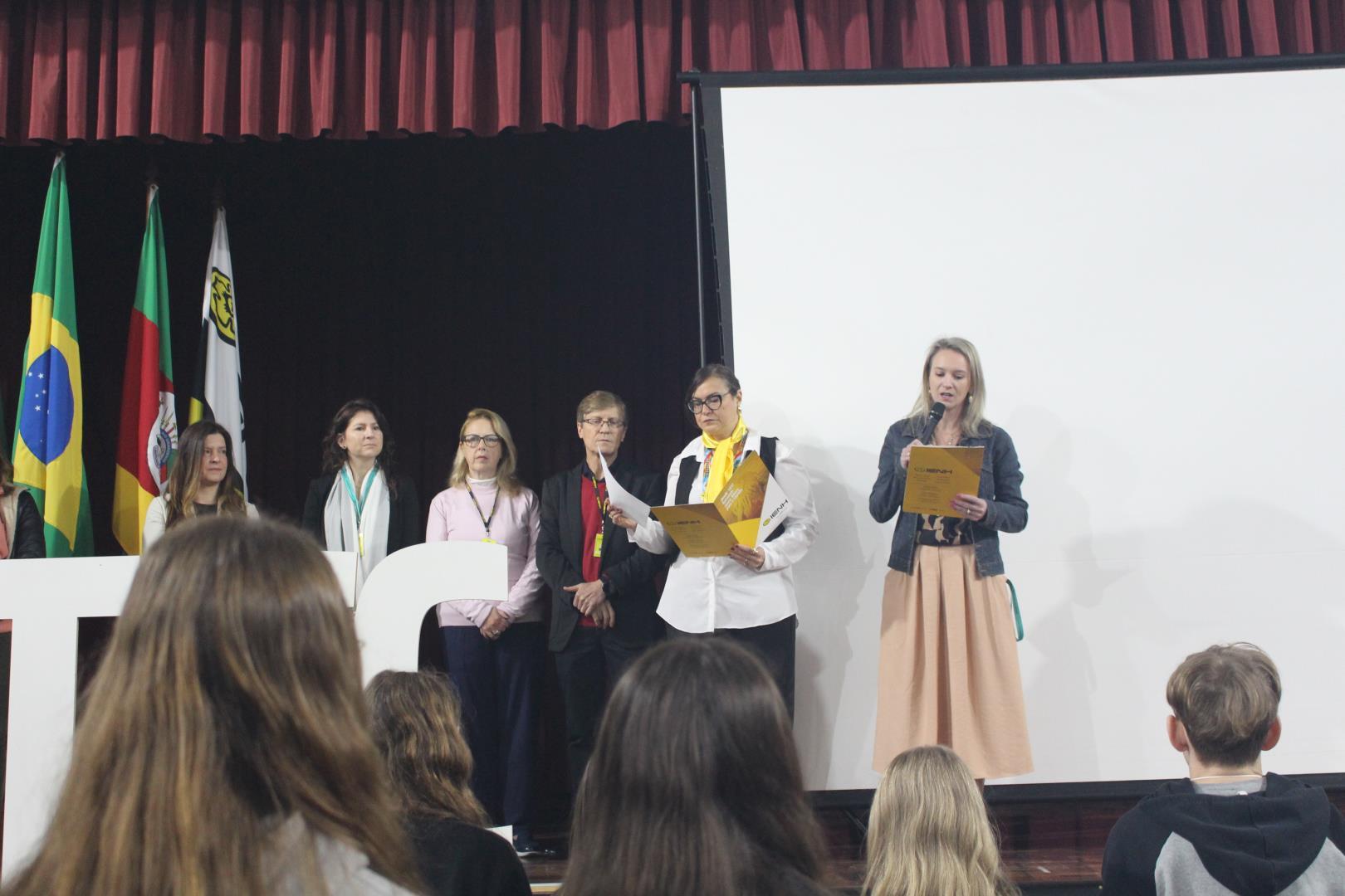 A cerimônia de abertura contou com a presença da Equipe Diretiva da IENH e do Núcleo Pedagógico das Unidades Pindorama, Oswaldo Cruz e Fundação Evangélica. Na ocasião, a coordenadora da Feira, Ana Paula Müller Machado, deu as boas-vindas aos participantes e destacou a relevância dos trabalhos desenvolvidos ao longo do processo.