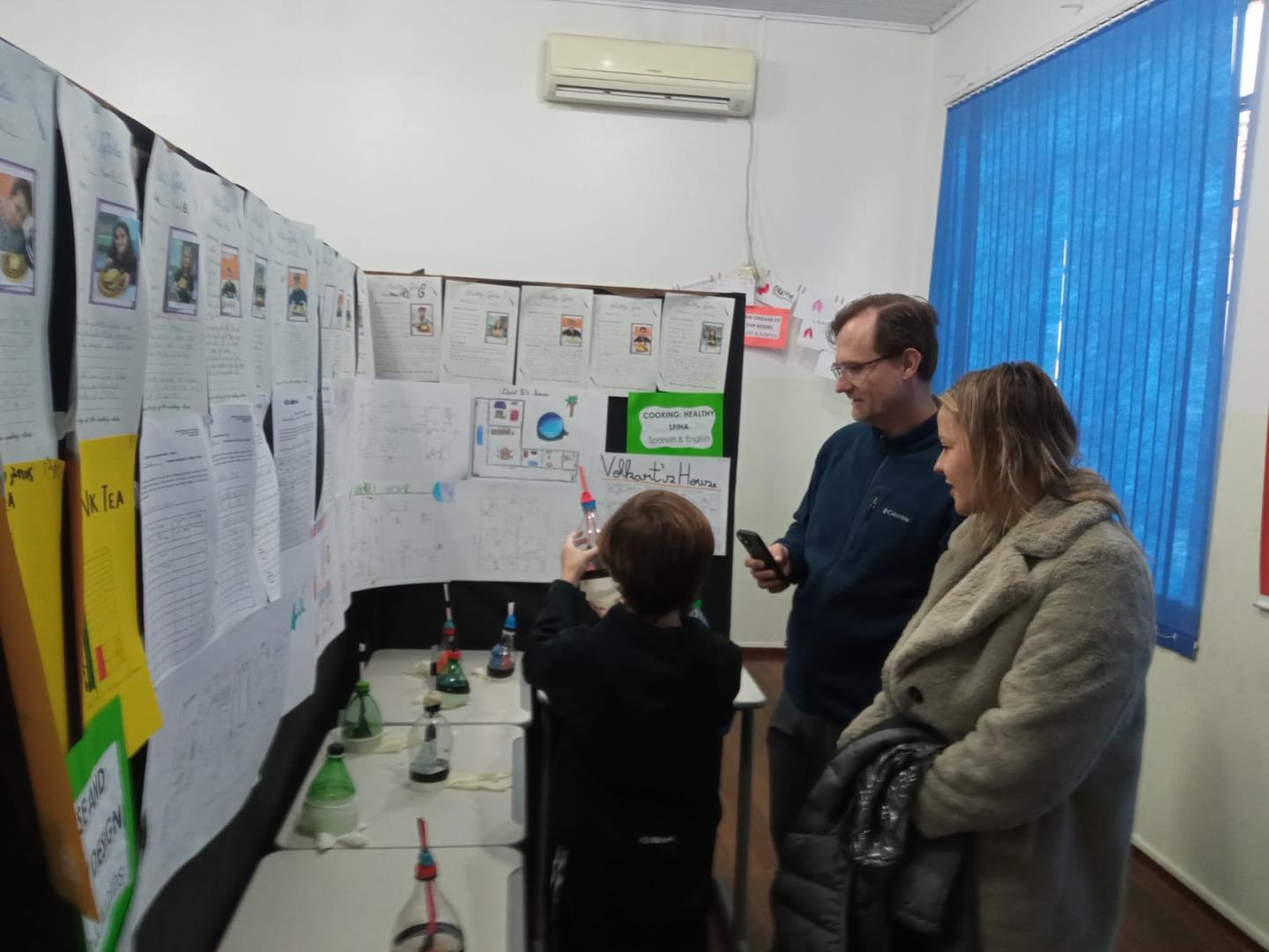 Os trabalhos desenvolvidos pela Educação Infantil (Early Years) do Currículo Internacional Bilíngue estavam expostos no Ginásio da Unidade, já os projetos do Ensino Fundamental (Primary) do Currículo Internacional Bilíngue estavam nas salas de aula de cada turma.
