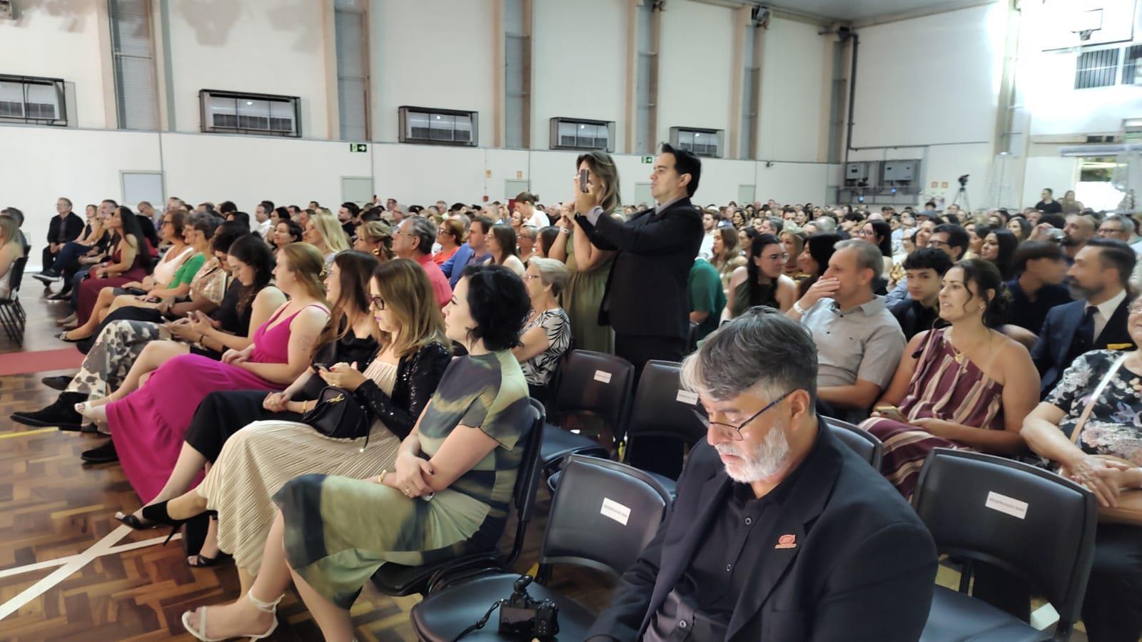 As falas das oradoras de turma emocionaram o público ao relembrar vivências, desafios e aprendizados construídos ao longo dos anos. Representando a turma 3A, Laura Luft Furtado destacou a força da amizade, o espírito de parceria e o papel fundamental das professoras e do paraninfo na formação pessoal e acadêmica dos estudantes. Já Sophia Dias Staub, oradora da turma 3B, trouxe reflexões profundas sobre crescimento, diversidade de personalidades e o valor dos “fragmentos” que constroem quem somos, além de prestar homenagens a profissionais que marcaram a caminhada da turma.